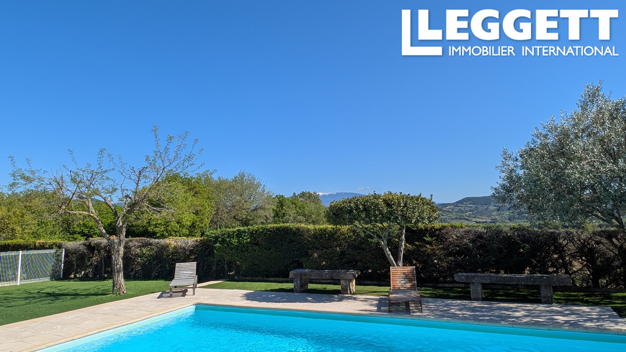 En position dominante sur les hauteurs d'un charmant village avec commerces à quelques minutes de route de Nyons et de Vaison-la-Romaine, cette villa des années 1970 bénéficie d'une superbe vue lointaine avec le Mont Ventoux et les Dentelles de Montm...
