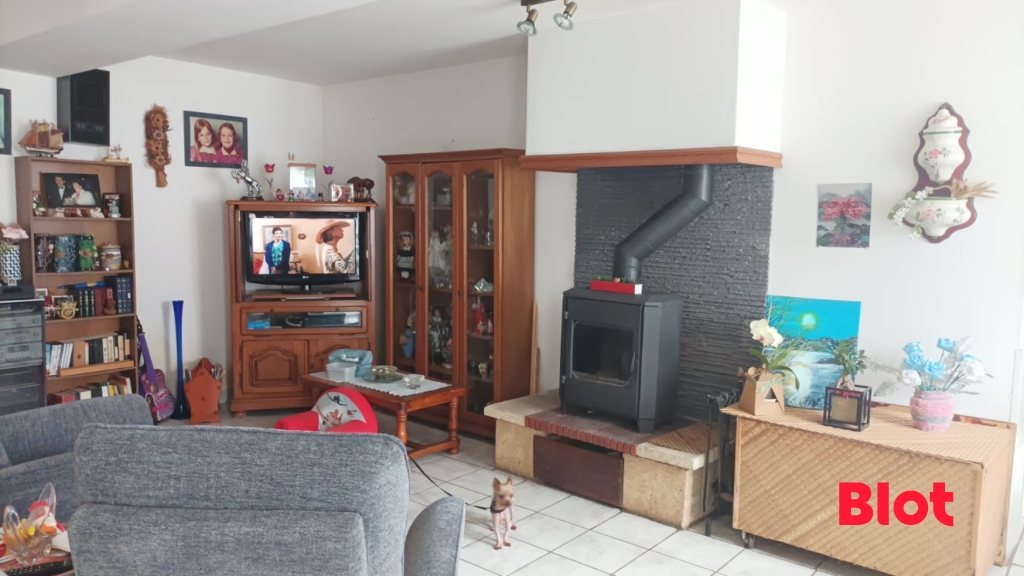 - une entrée, un salon-séjour avec poêle à bois, une cuisine aménagée, chambre et wc