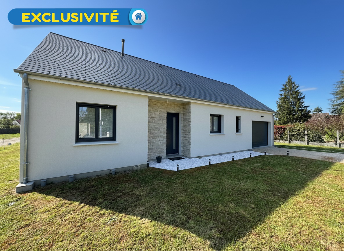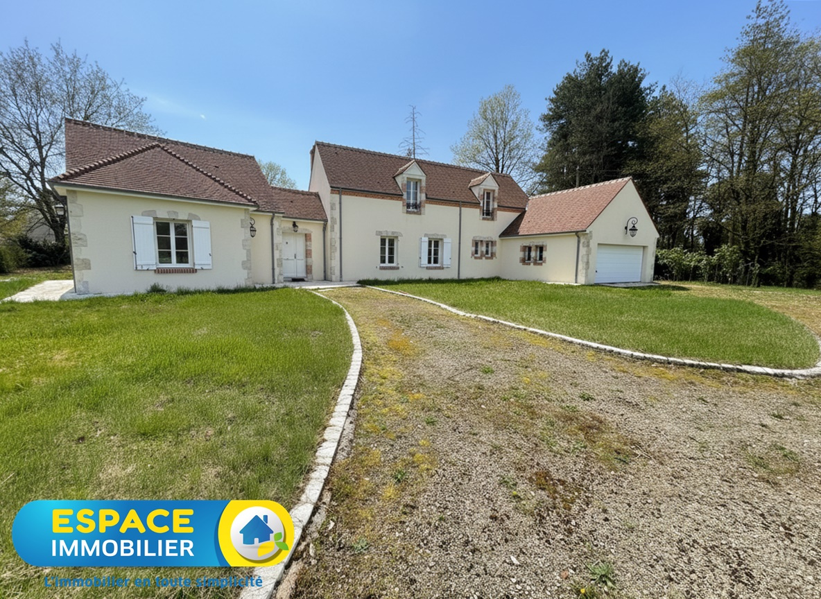 Exclusivité ! Maison de plain-pied avec de très belles prestations d'environ 135 m2 à Vitry-aux-Loges comprenant une entrée avec placards, un spacieux séjour salon d'environ 54 m2 avec une cuisine faite sur mesure avec un plan de travail en granit am...