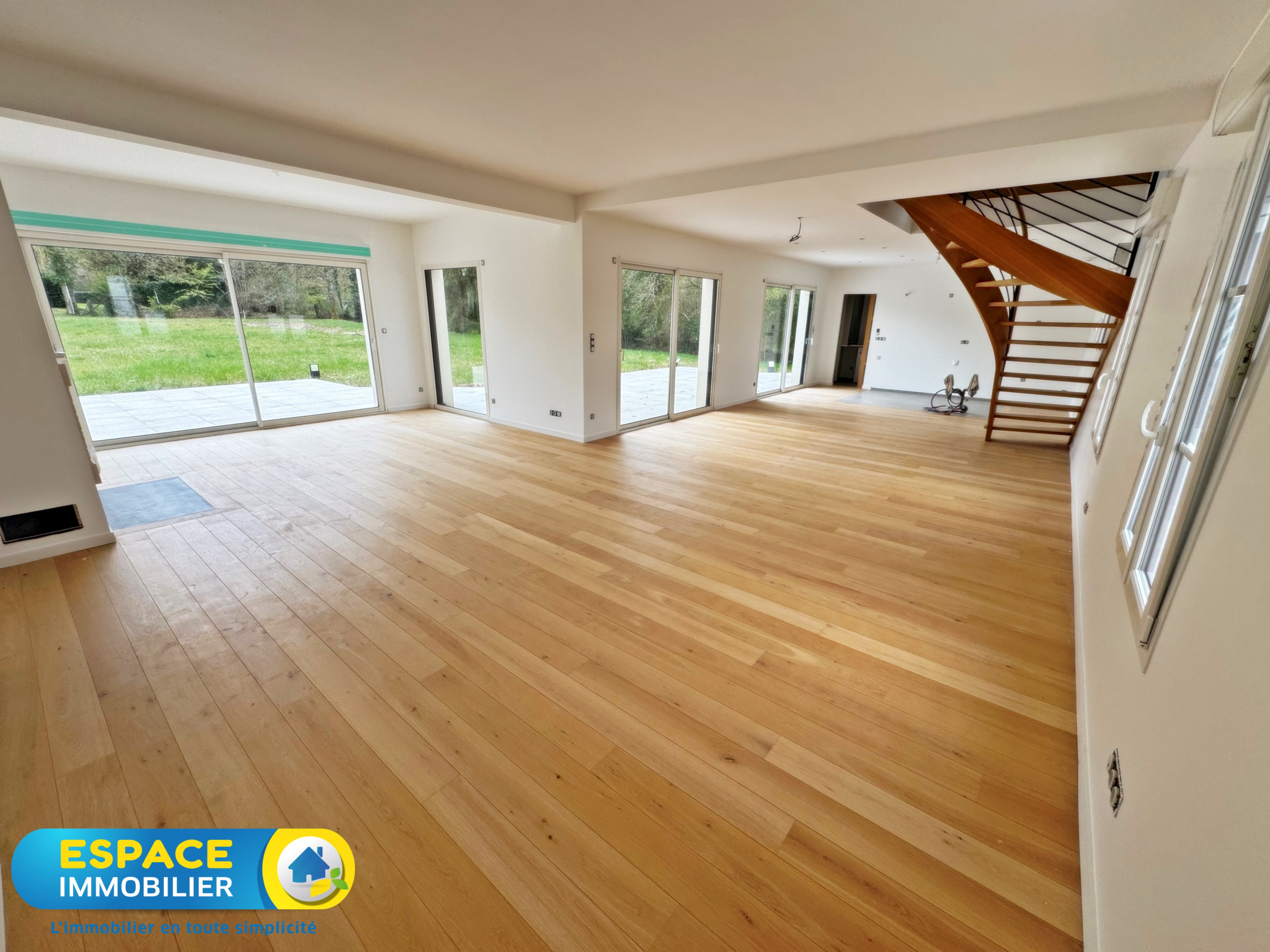 Exclusivité ! Votre agence Espace Immobilier vous présente une maison au calme conçue en 2024 totalement de plain-pied comprenant une entrée, un spacieux séjour salon très lumineux avec une cuisine aménagée et équipée donnant sur une terrasse exposée plein sud...