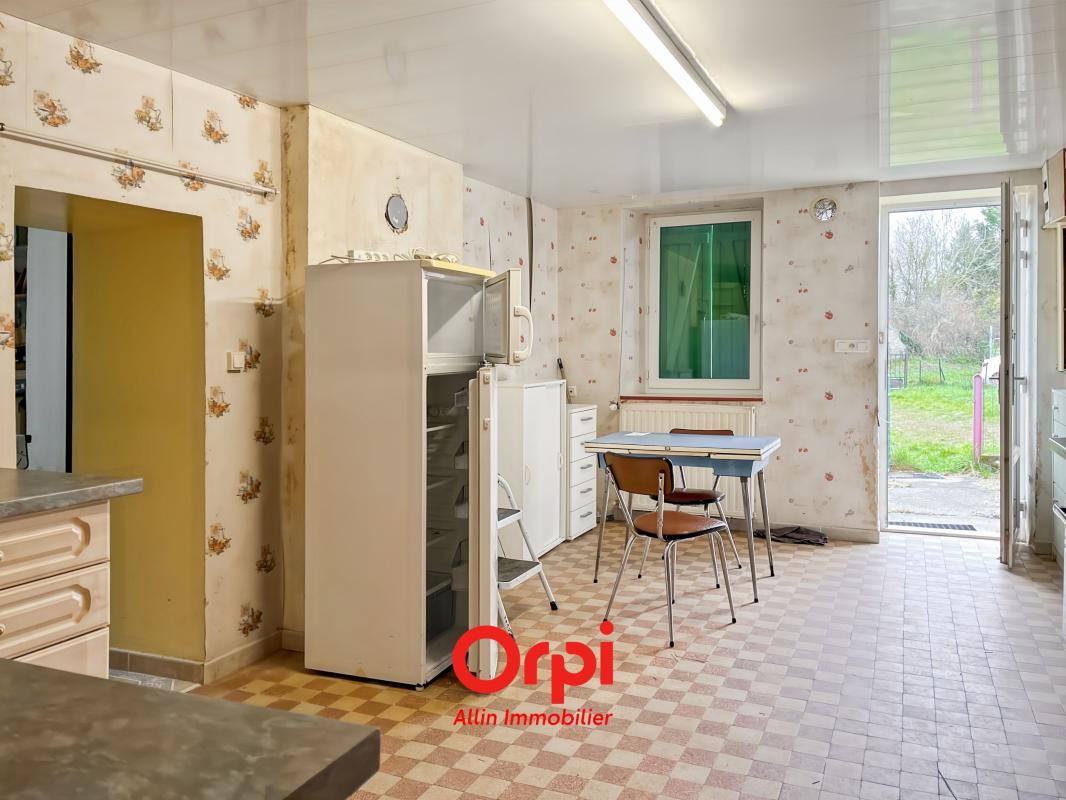 A vendre dans un petit village avec école et épicerie, jolie longère en pierres composée en rez-de-chaussée d'un salon ouvert sur cuisine, une chambre, une salle de bains et un WC, une grande pièce séjour avec accès vers l'étage.
