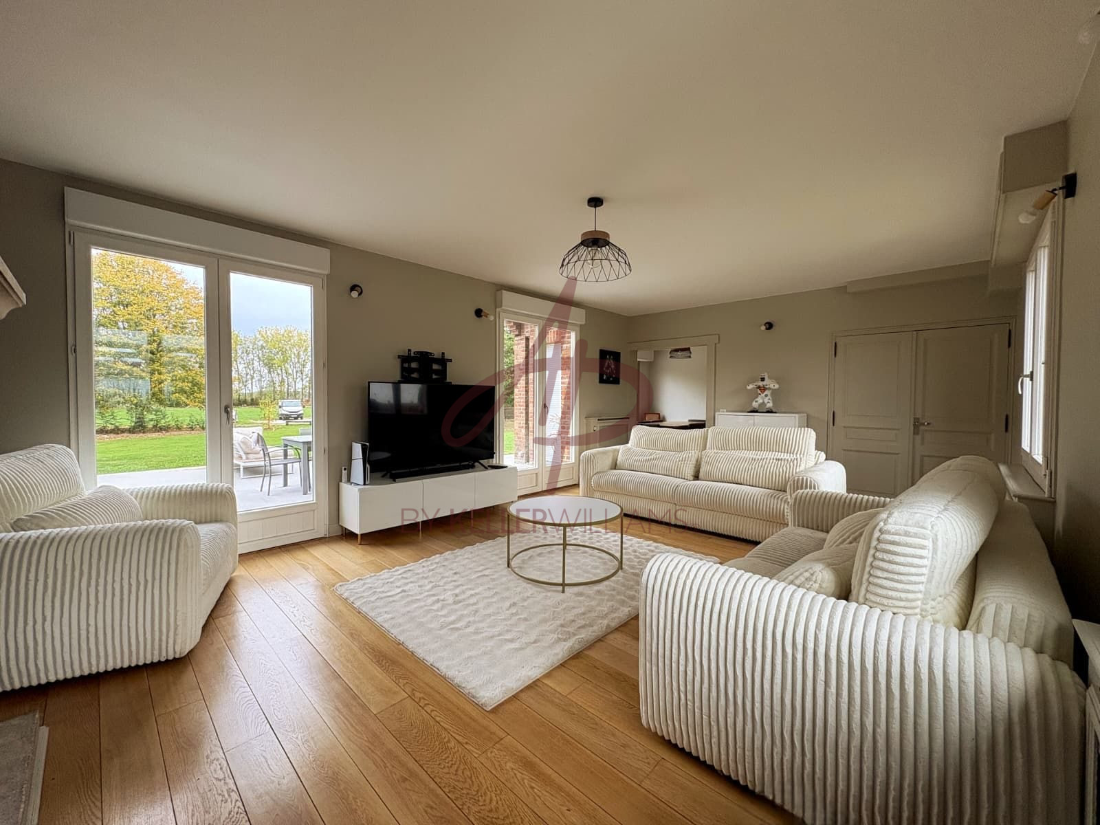 À quelques kilomètres de la Belgique - Maison 5 pièces de 130 m² et de 1 900 m² de terrain avec jardin. Elle comporte quatre chambres, une cuisine américaine et deux salles de bains. Autres plus : elle bénéficie d'une terrasse et d'un garage (5 place...