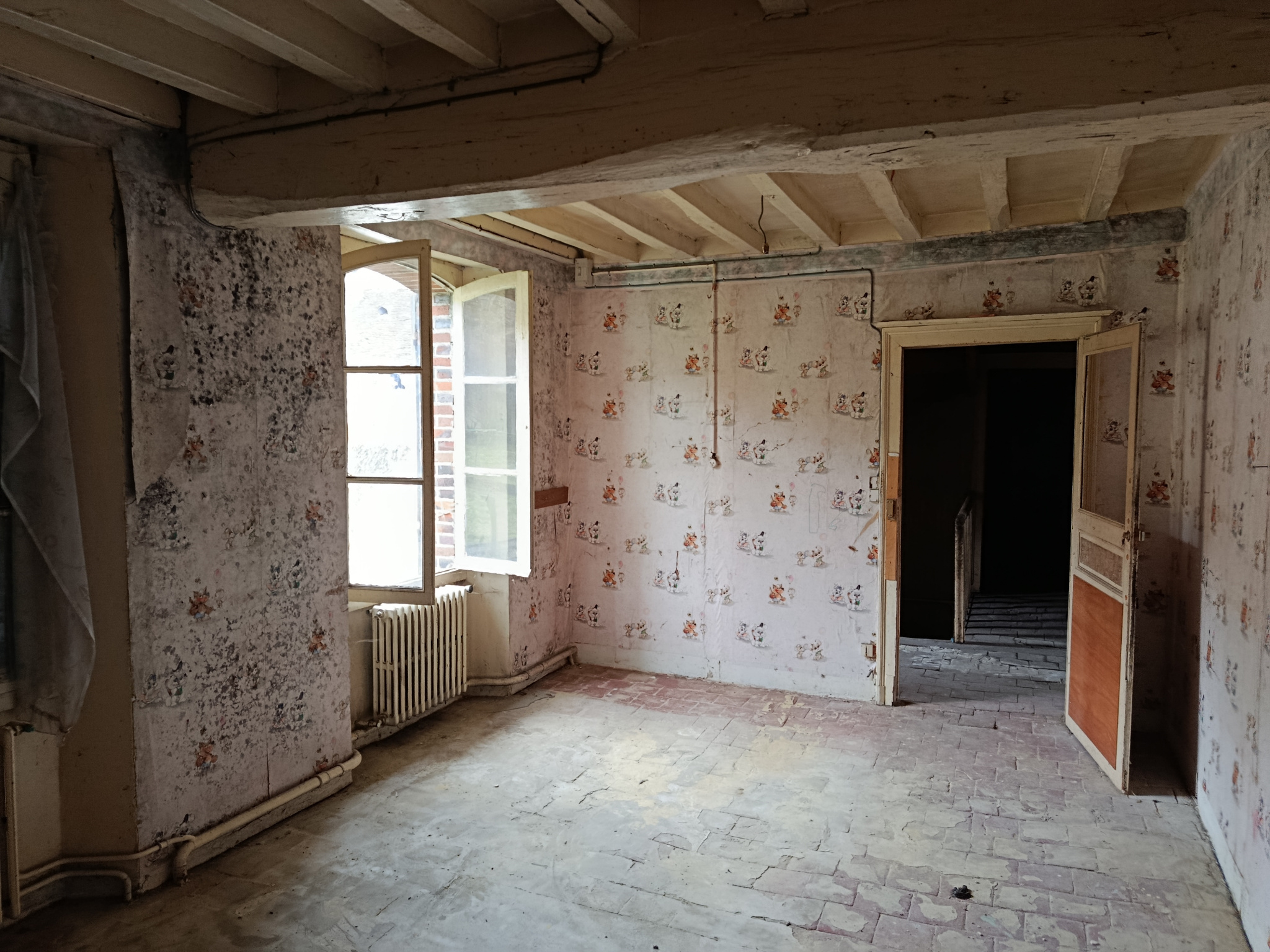 A l'étage : palier, 2 chambres en enfilade.
