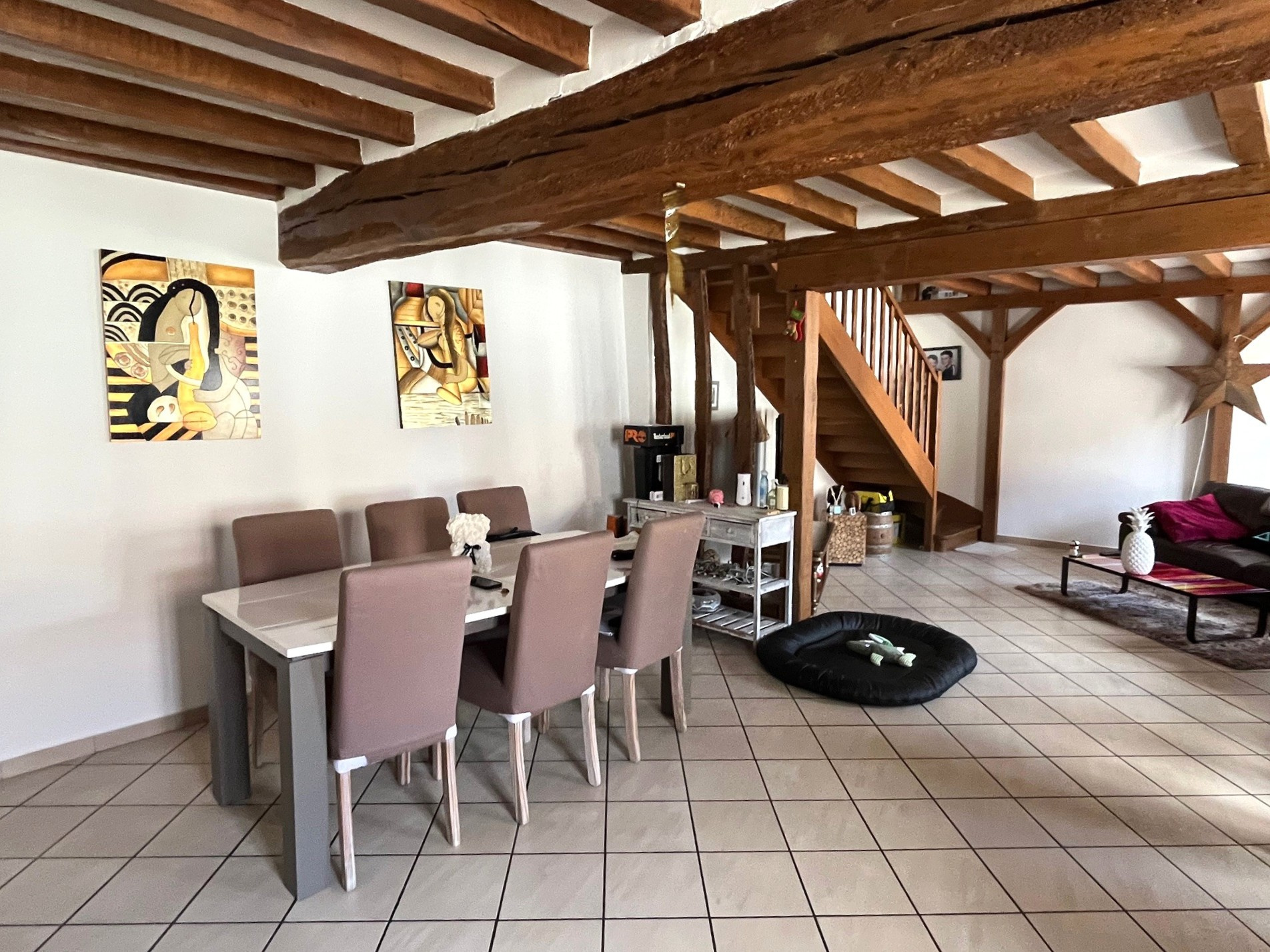 Dès l'entrée, vous serez séduit par un spacieux séjour-salle à manger agrémenté d'un poêle à bois, idéal pour les mo...