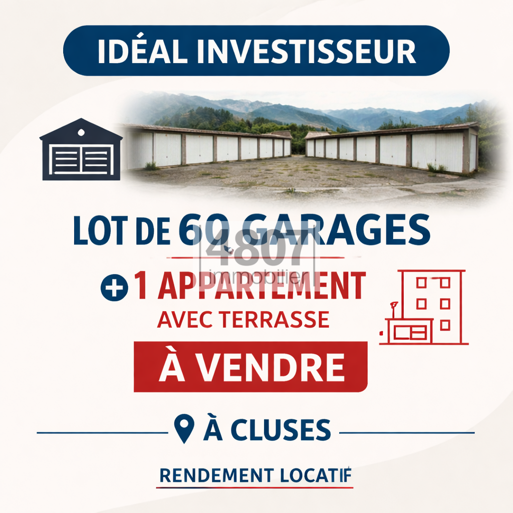 Nous vous proposons à la vente un lot de 17 garages actuellement loué ainsi qu'un appartement situé dans le même ensemble immobilier.