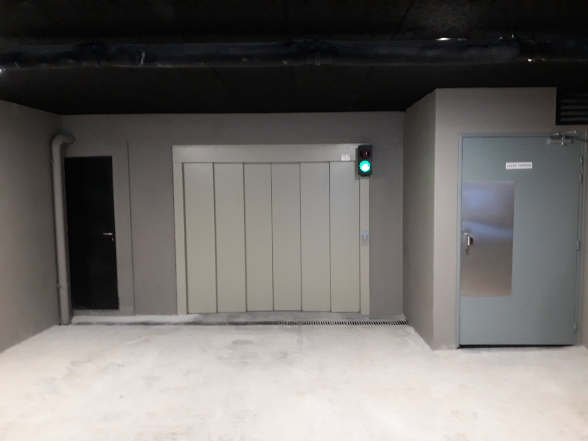 Porte électrique, lumière et prise électrique à l'intérieure. Accès facile et large pour tous les types de véhicules.