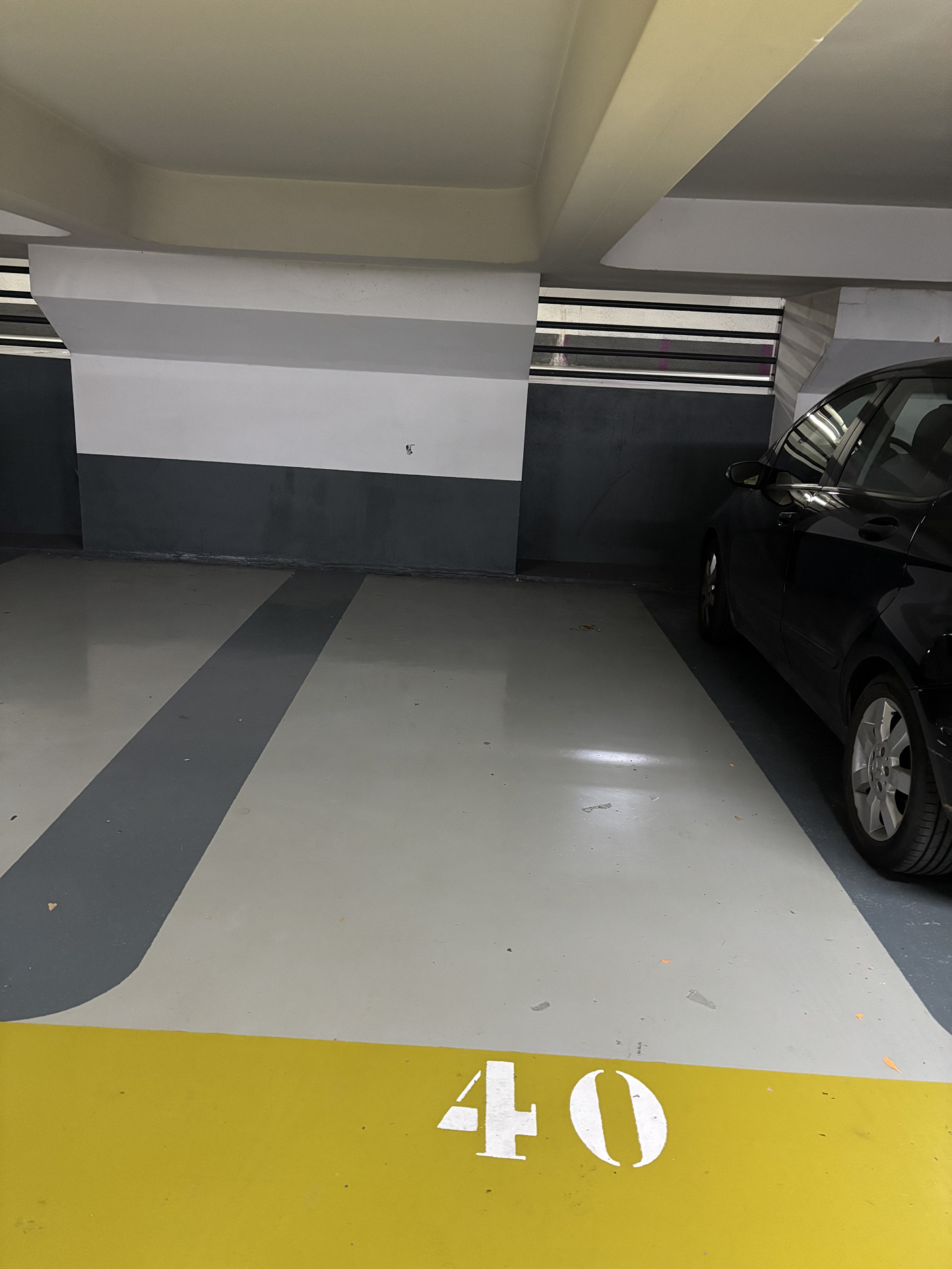 Emplacement de parking au 2ème sous-sol d'une résidence semi-récente.