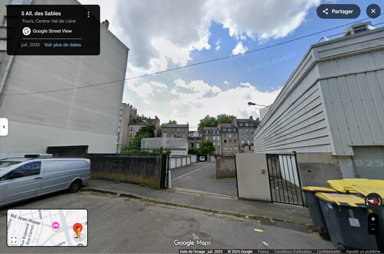 Xavier vous propose cette place de parking extérieure située à 3 mn à pieds de la gare de Tours.
