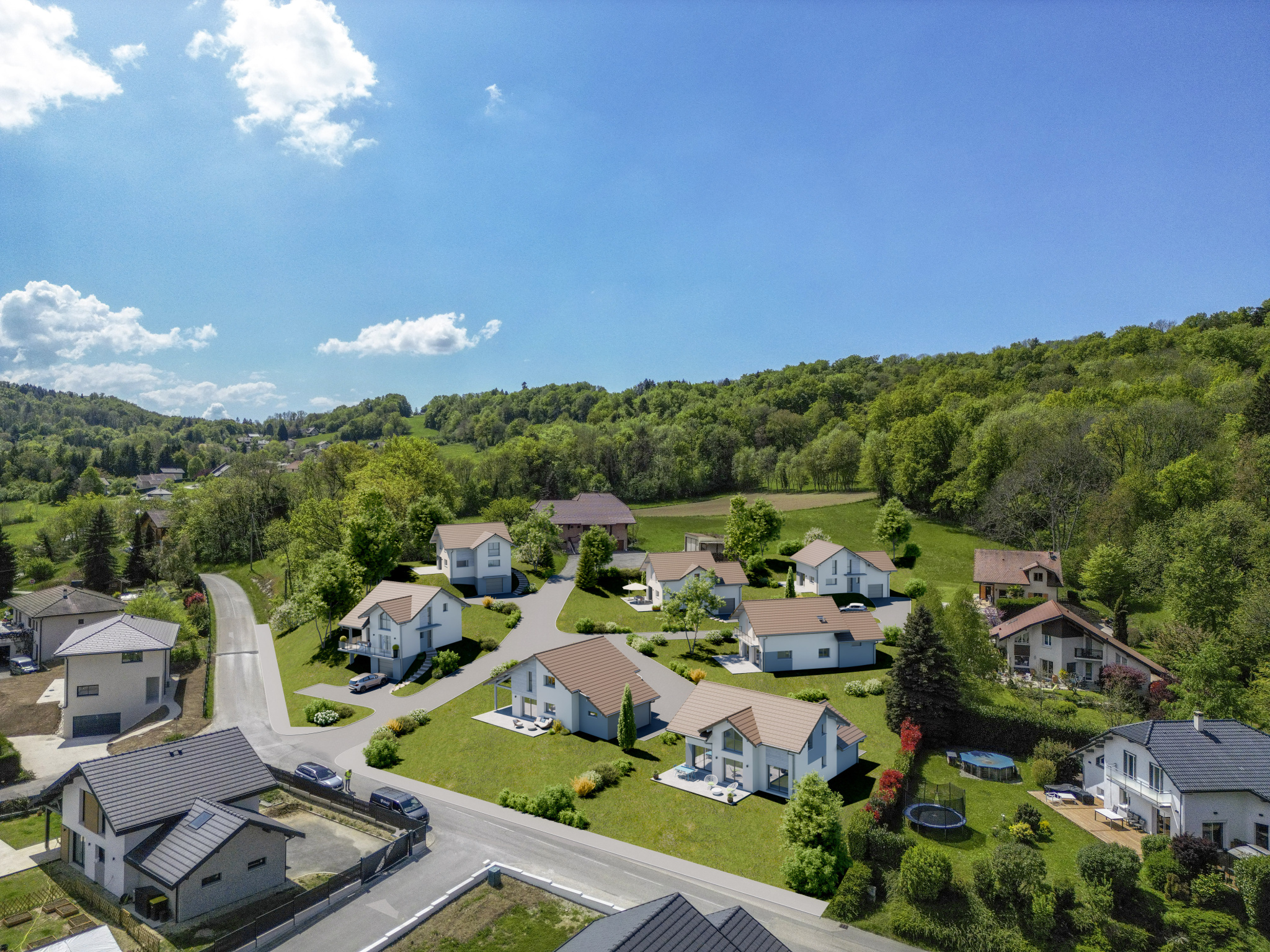 Terrain constructible avec projet de villa, 3 lots à la vente dans un environnement au calme, à 15 minutes d'Annecy, sur l'axe Annecy / Genève.