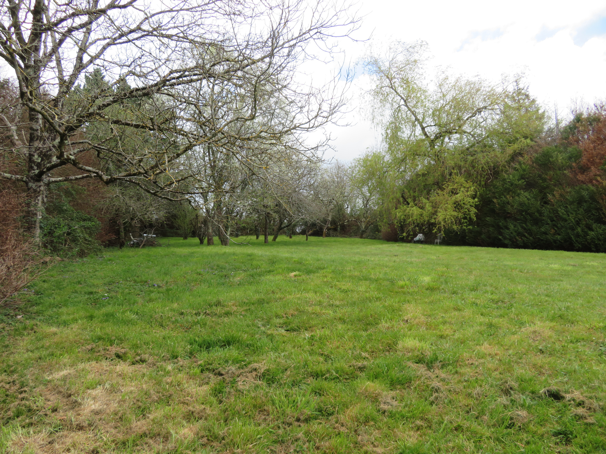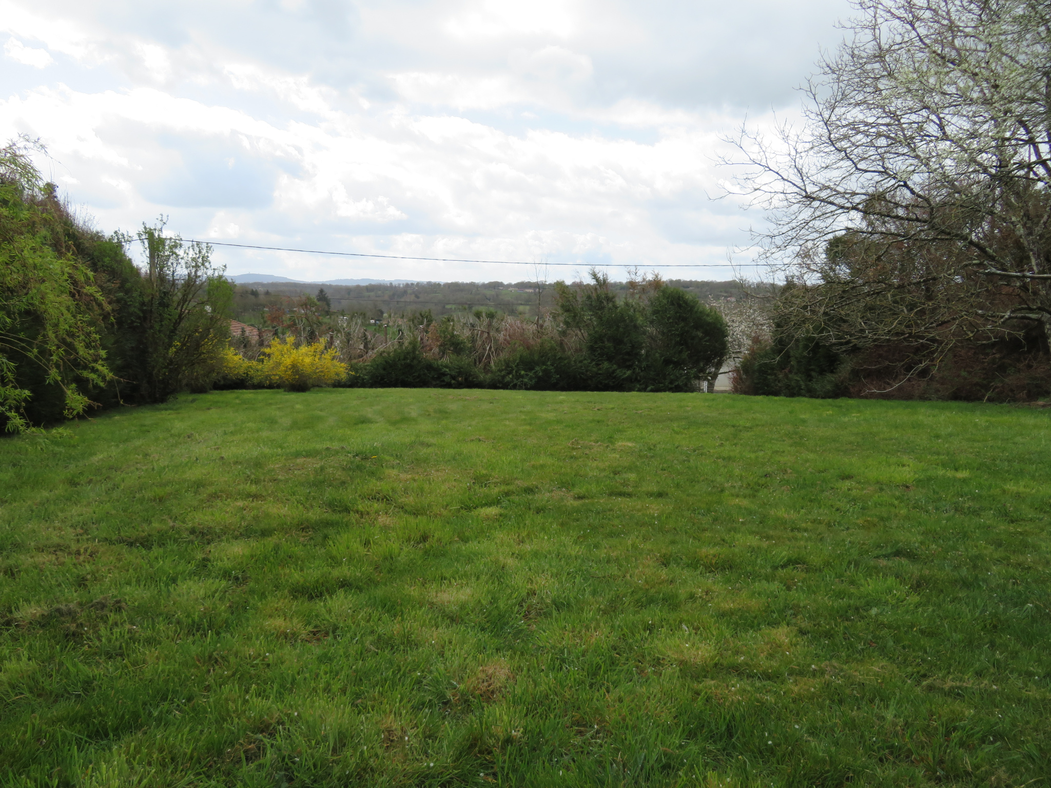 Ce terrain plat et arboré est raccordable à l'eau de la ville, à l'électricité et au tout à l'égout qui passe...