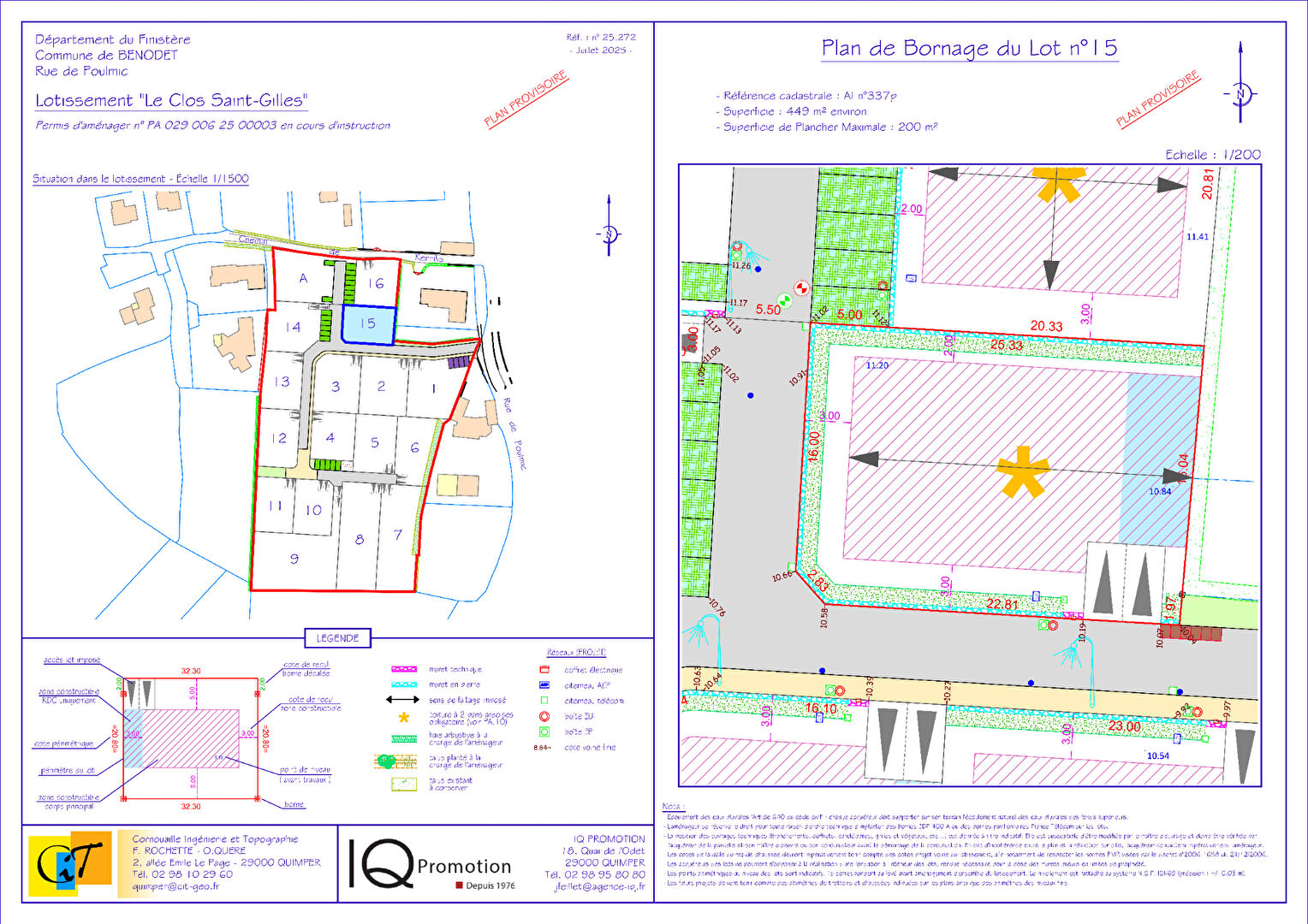 NOUVEAU - Le lotissement "Le Clos Saint Gilles" est situé au Sud/Ouest de Bénodet à environ 1,5 km du bourg et des commodités. à 400 m de la pointe Saint Gilles, dans un environnement résidentiel naturel et champêtre.