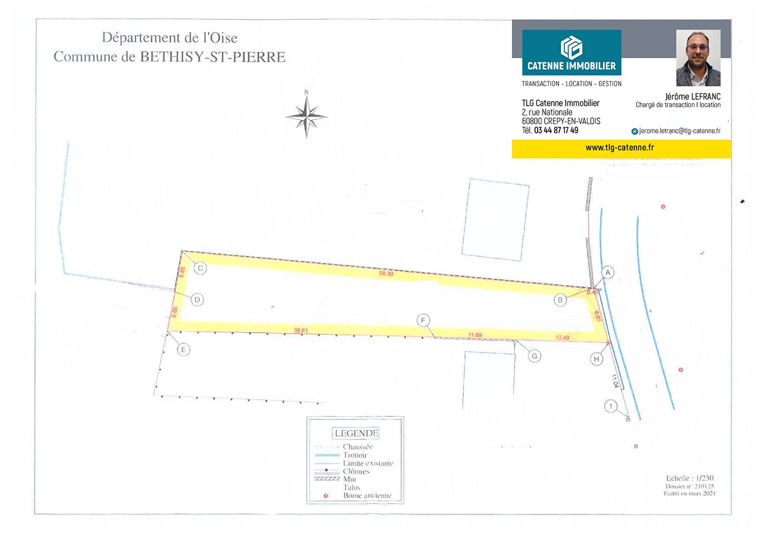 Bethisy St Pierre (60320) - Terrain à bâtir d'une surface de 583m², façade 8.01m, sous sol obligatoire, tout à l'égout.