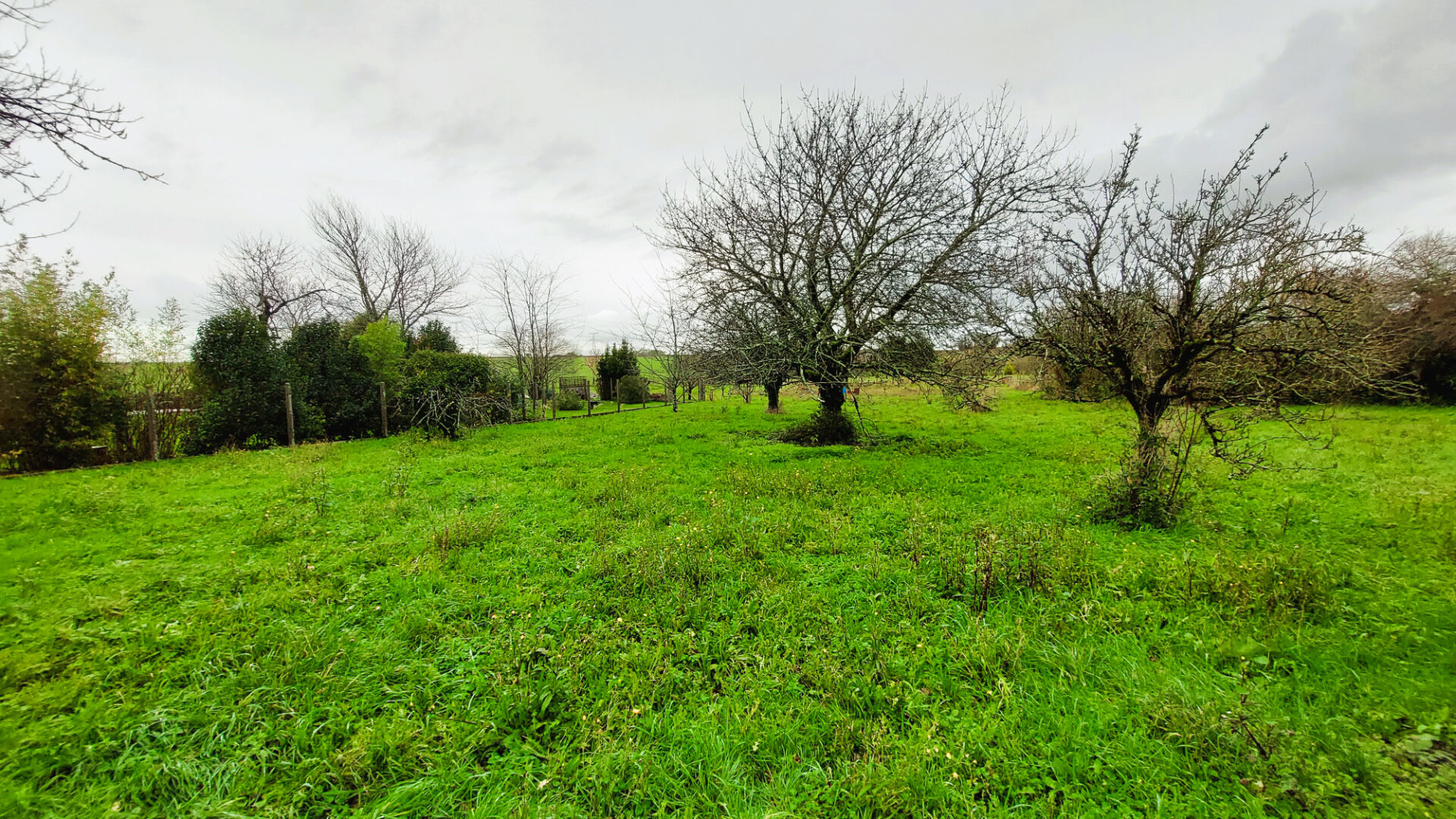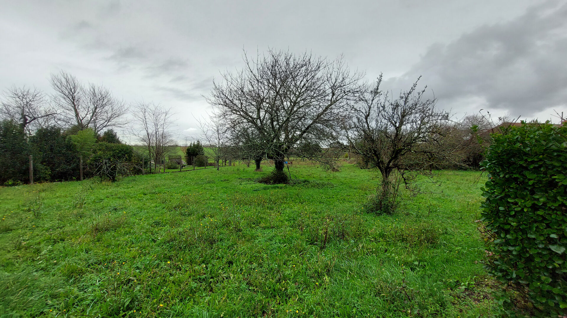 Façade 14 m sur 54 m de profondeur avec vue dégagée sur la campagne.