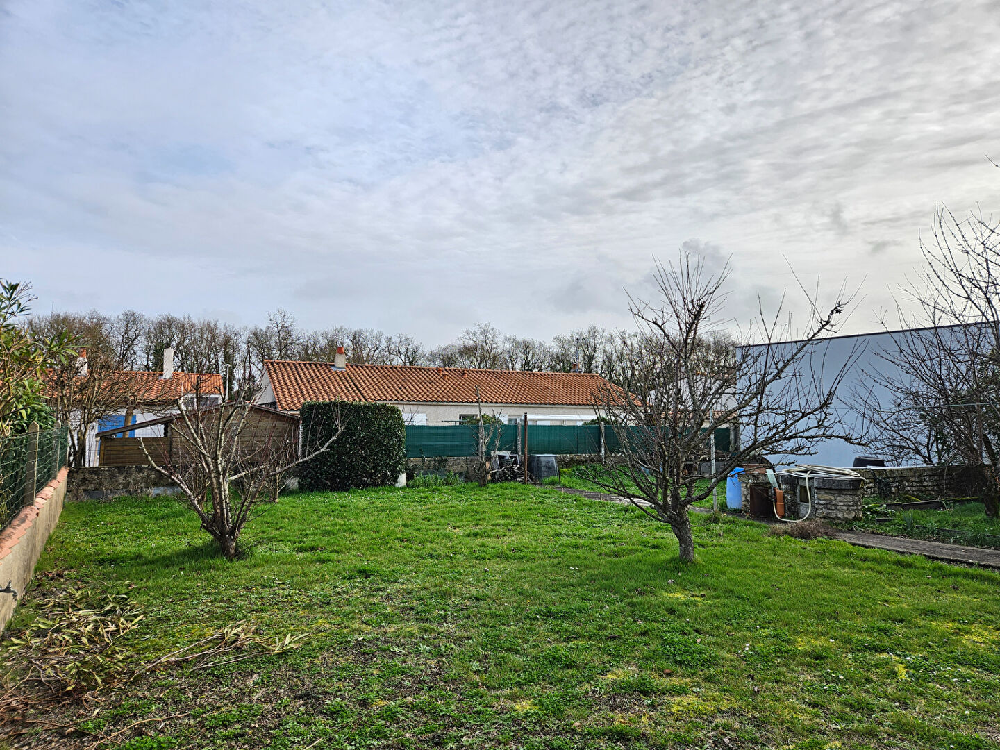 Terrain clôturé et arboré, déjà viabilisé (eau + électricité), pourvu de 3 places de stationnement, dont 1 couverte p...