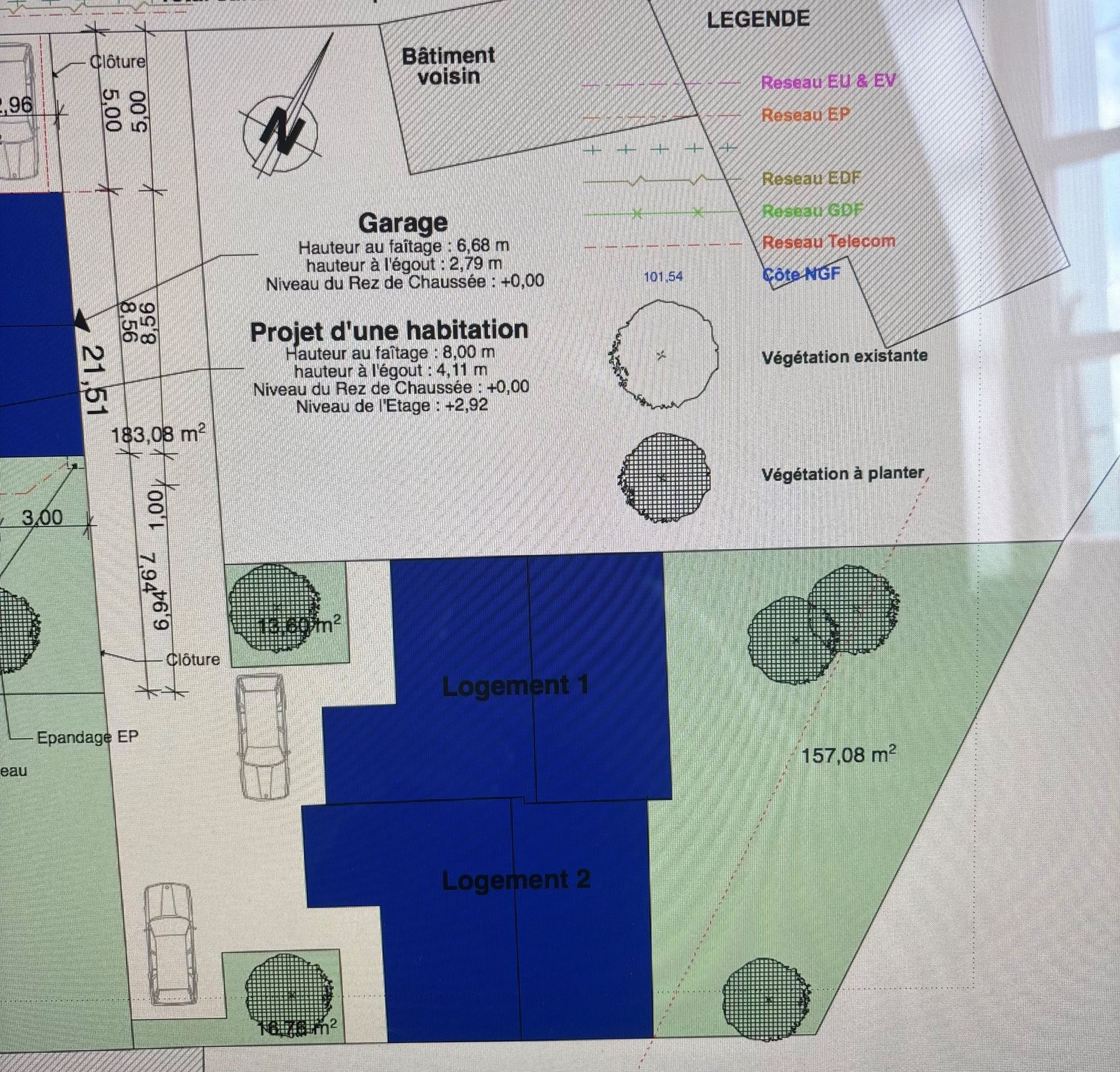 Viabilisation sur rue (Eau, électricité, Tout à l'égout). Façade de 32 m.