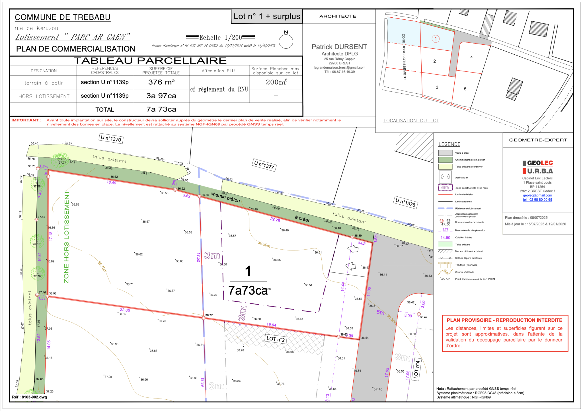 Terrain constructible - 695 m² - Centre de Plougastel-Daoulas