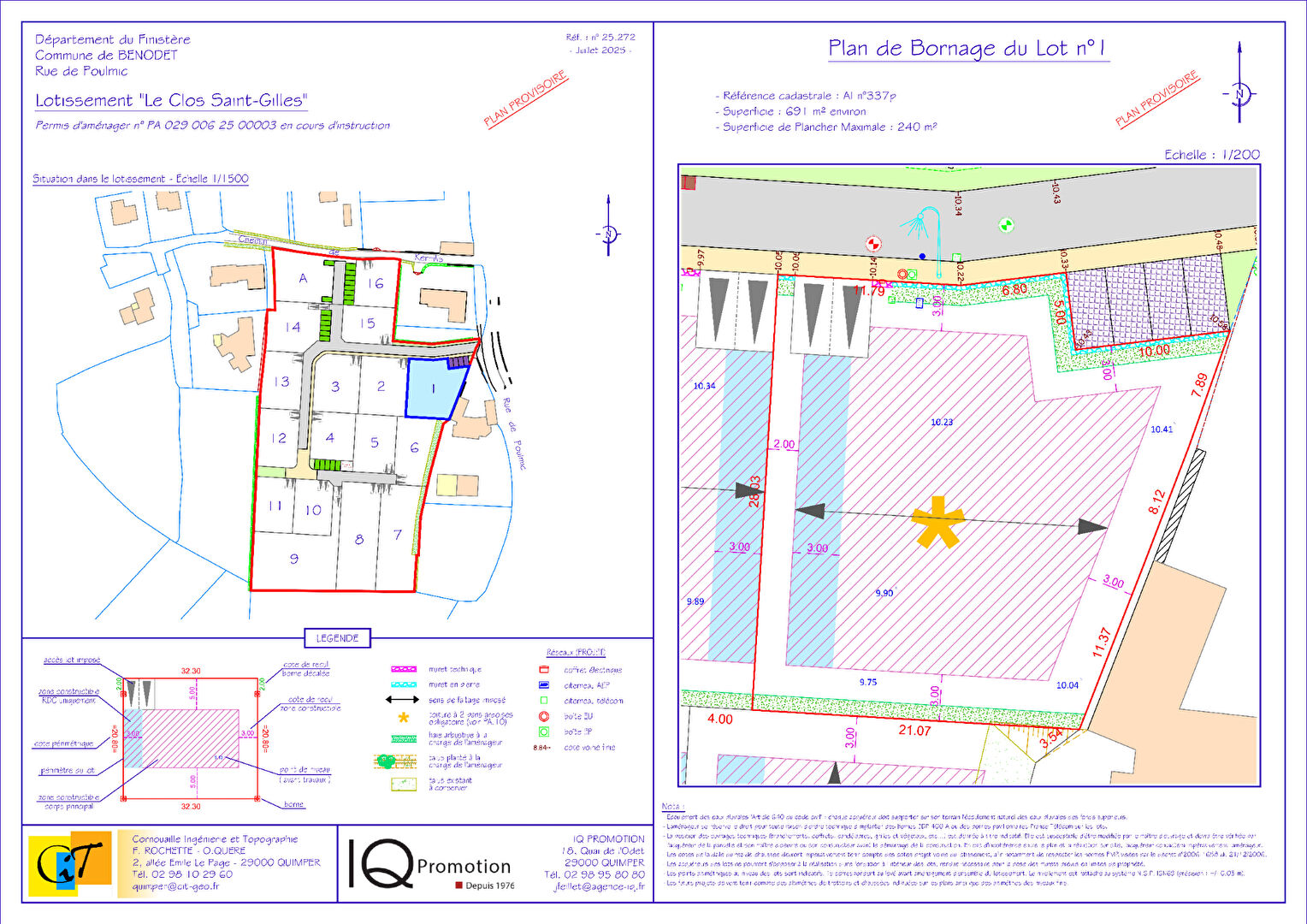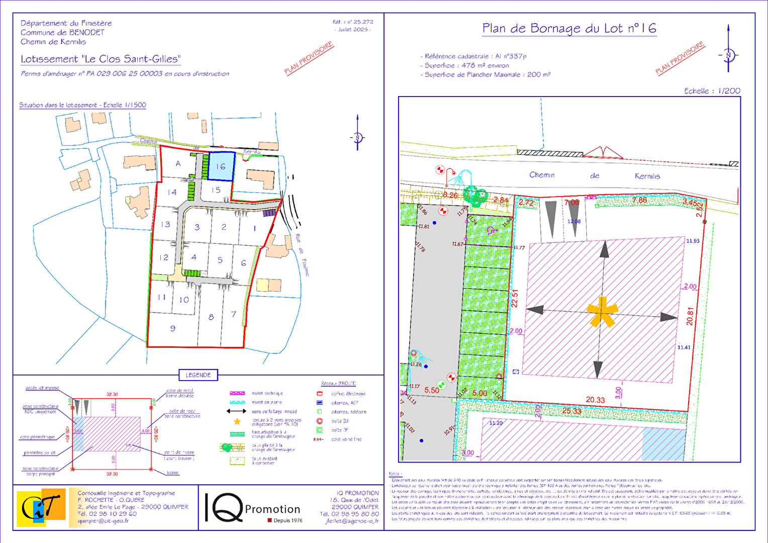 NOUVEAU - Le lotissement "Le Clos Saint Gilles" est situé au Sud/Ouest de Bénodet à environ 1,5 km du bourg et des commodités. à 400 m de la pointe Saint Gilles, dans un environnement résidentiel naturel et champêtre.
