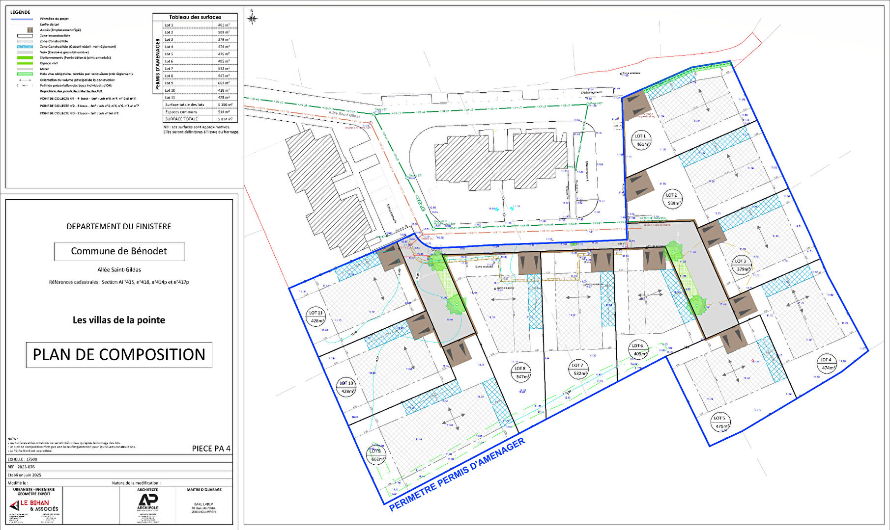 BENODET , situé en impasse dans un quartier résidentiel de standing, le lotissement "Le Hameau De La Pointe" est composé de 11 lots libres de constructeur, de 379 m² à 662 m² (surface moyenne : 482 m²). Lot entièrement viabilisé, aménagement paysager...