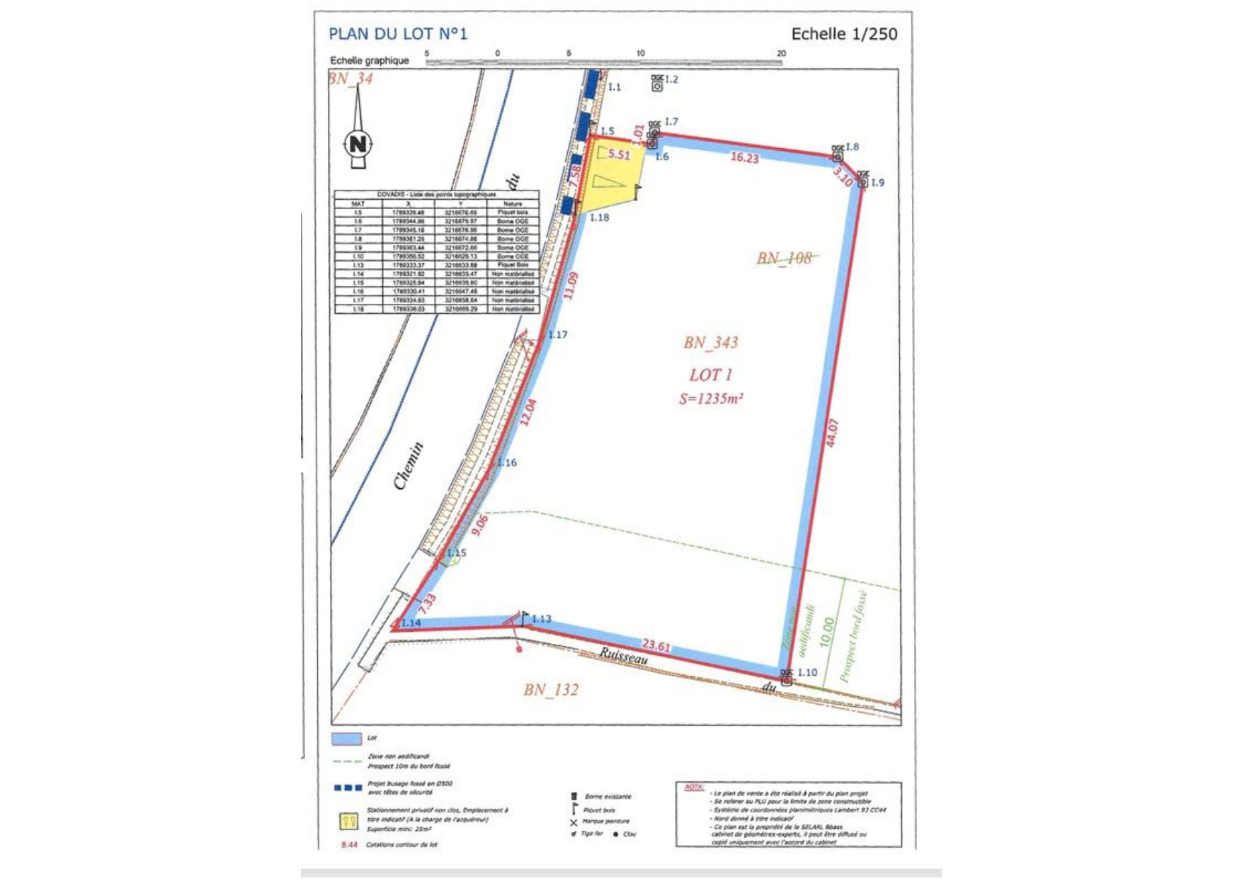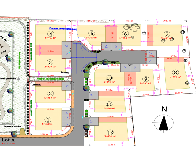 Le terrain de 640m2 est vendu viabilisé ( eau - électricité - tout à l'égout - fibre ), est libre de constructeur avec une emprise au sol de 20% soit 128m2.