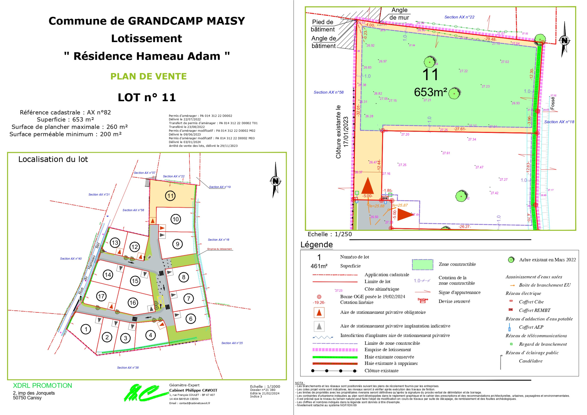 Sur la commune de Grandcamp-Maisy, à proximité des commerces et de la mer, 17 parcelles de terrain à bâtir comprises entre 250m2 et 645m2 (permis d'aménager validé et purgé).