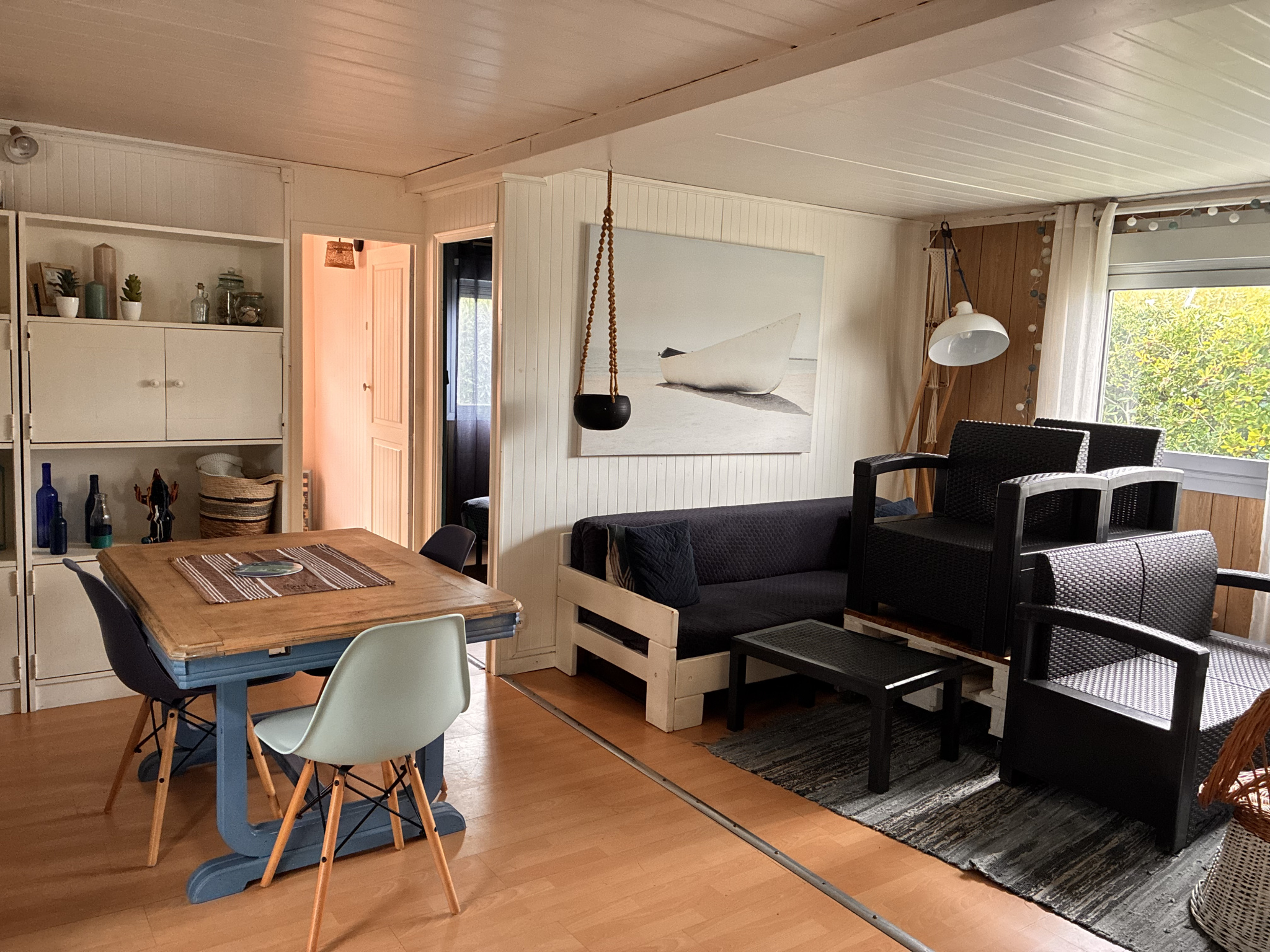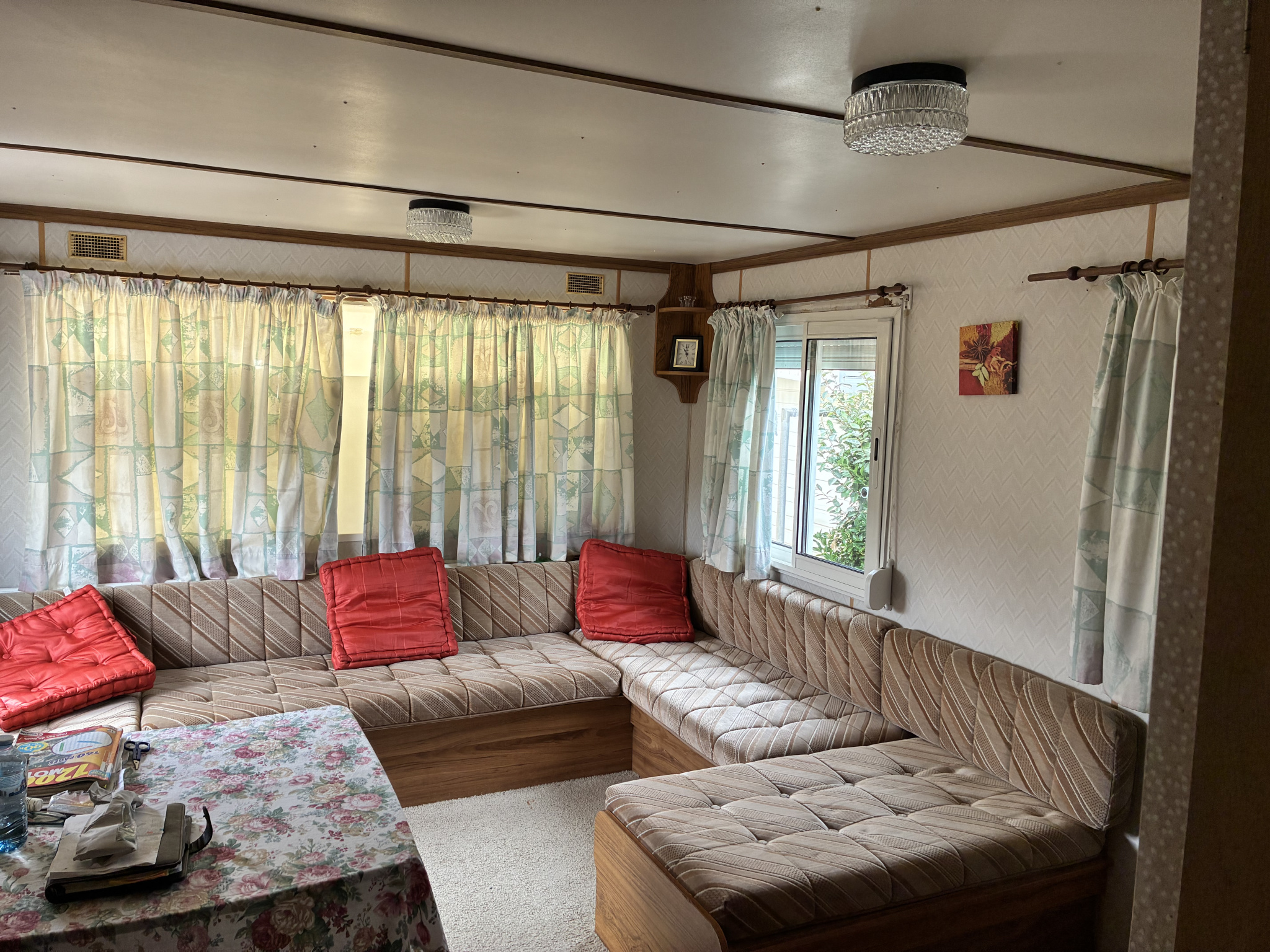 Le mobil-home se compose d'une cuisine aménagée, un salon avec canapé banquette, 2 chambres, ...