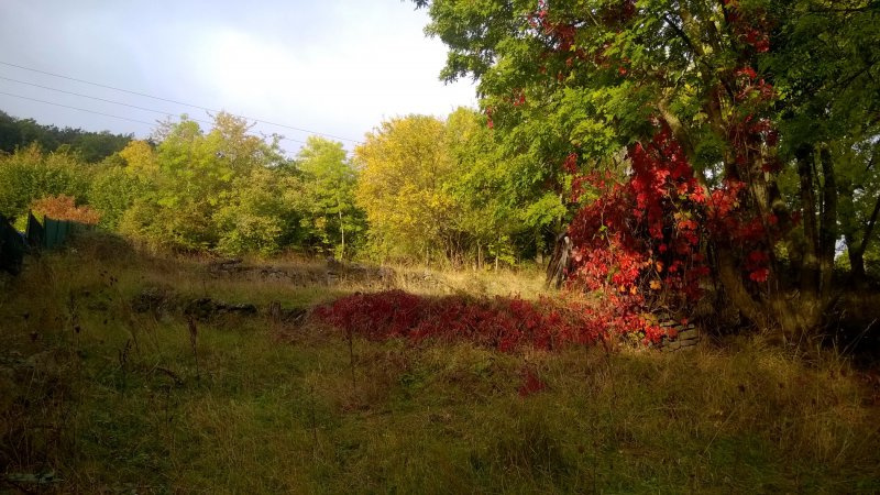 Terrain pentu ( 4 mètres de dénivelé entre le haut et le bas du terrain )