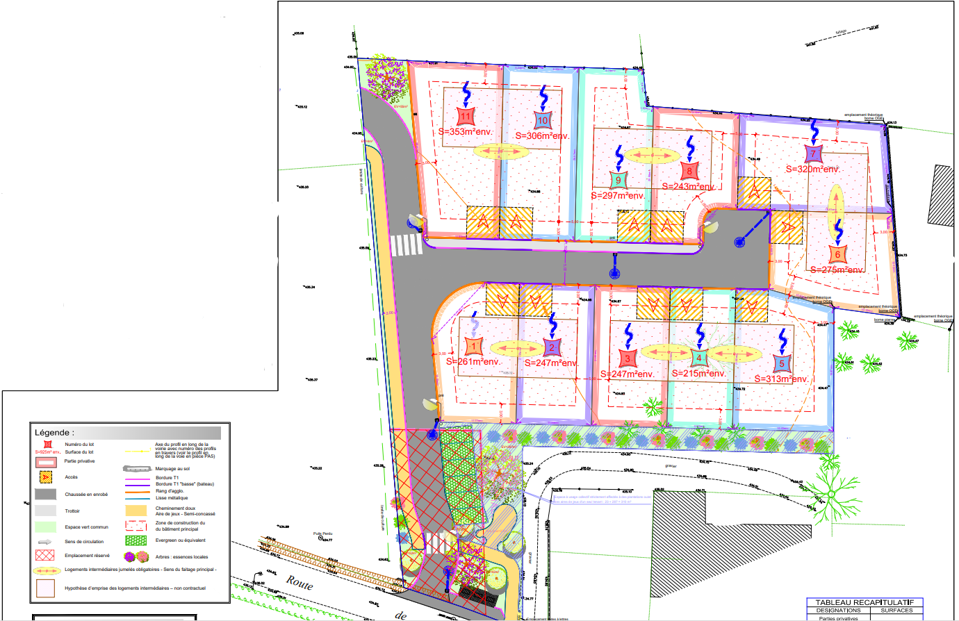 Les viabilités se situent sur la servitude. Les destinations autorisées sont nombreuses : Habitations, Entrepots, Bureaux...