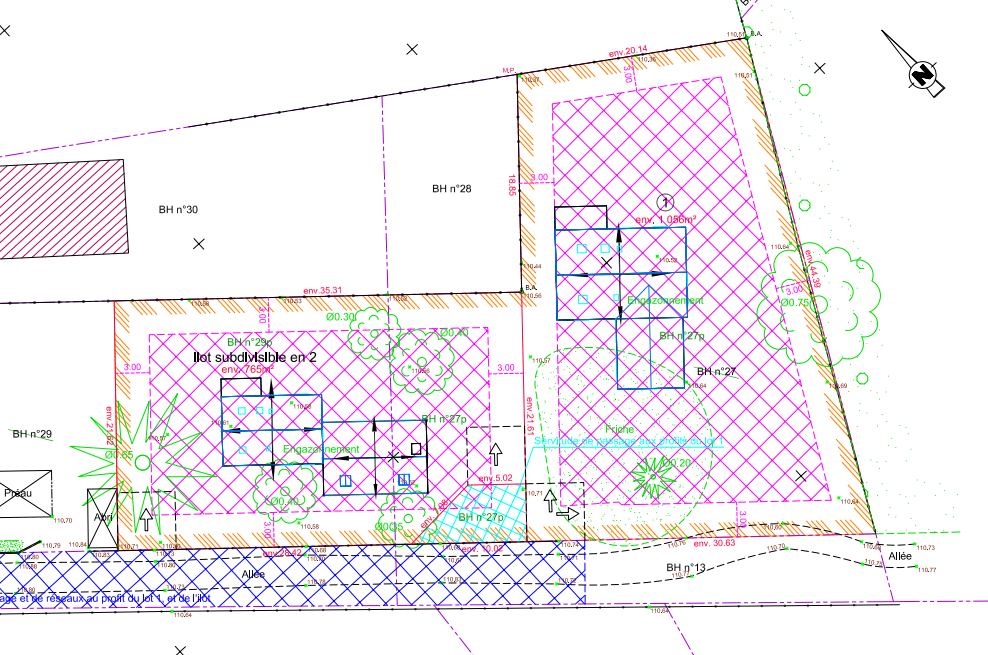 Voici un terrain a bâtir pour lotissement en centre ville, une parcelle de de plus de 3500 m², pour 5 ou 6 parcelles, eau, électricité, téléphone et tout a l'égout en façade de la parcelle. Terrain a diviser.