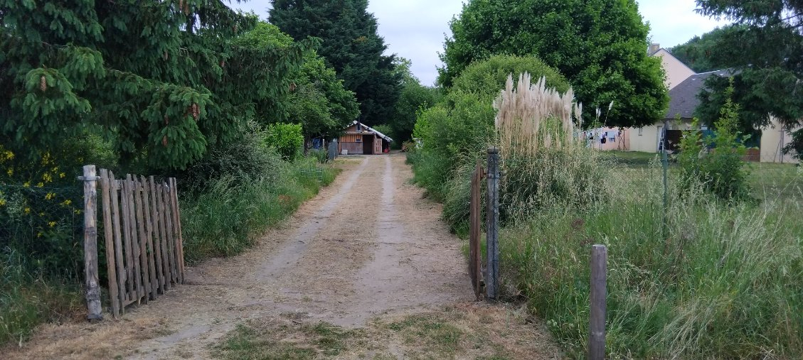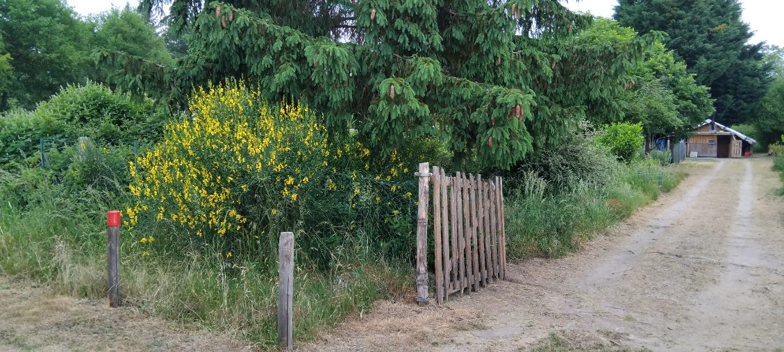En partie clôturé avec un passage busé pour entrer un véhicule.