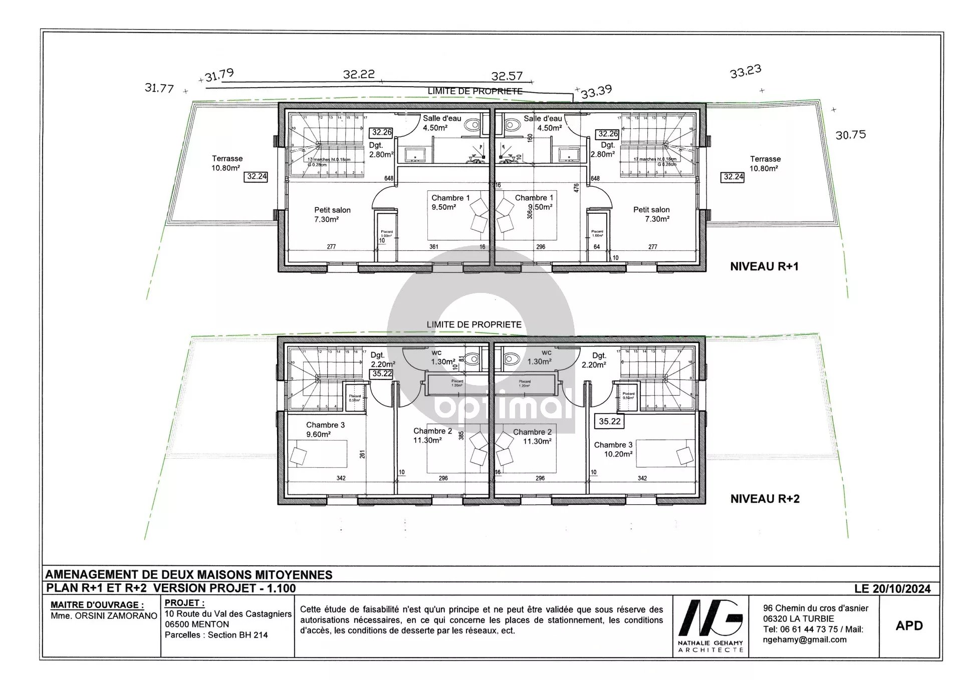 Projet neuf avec une permis accordé et purgé pour la création de deux maisons mitoyennes en copropriété avec rez de chaussée et deux niveaux, jardinets extérieurs, terrasses, garage.