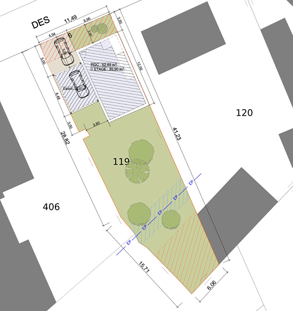 La parcelle bénéficie d'une triple exposition idéale : EST-SUD-OUEST