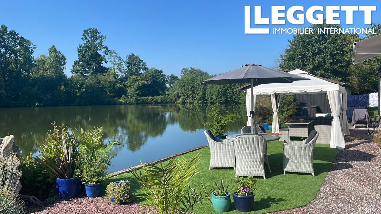 A43080DSE61 - Un magnifique étang de pêche à la carpe d'environ 3,6 acres, situé dans un cadre privé près de Passais la Conception, comprenant une maison familiale avec 2/3 chambres, un gîte de luxe avec une chambre, un pavillon de pêcheur et un hangar à ...