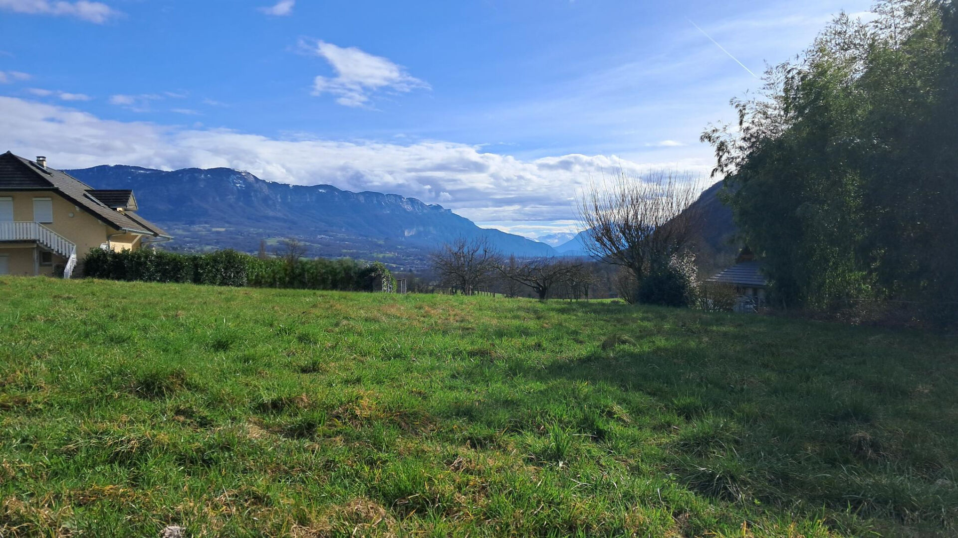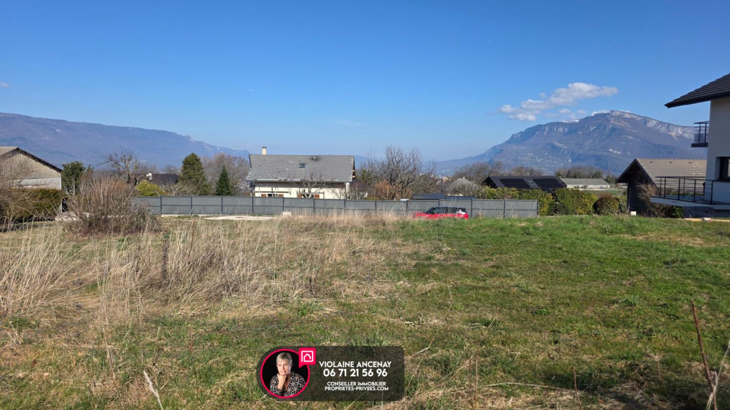 Dans le village de La Biolle, en hameau, au calme, hors lotissement, avec très belle vue dégagée sur la campagne, Le Revard, et les Belledonne, orienté Sud, très joli terrain plat libre de constructeur. Viabilité en bordure avec eau, téléphone, électricité et ...