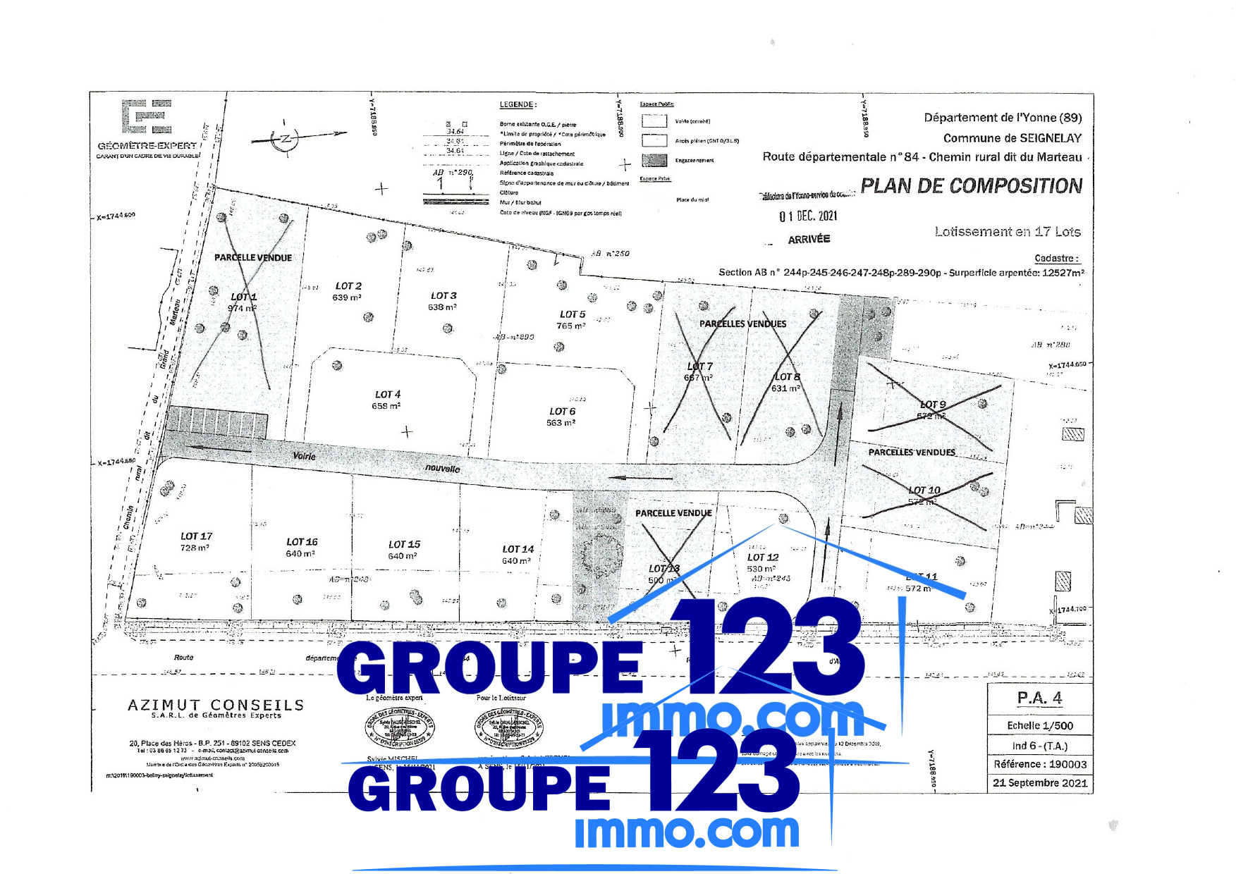 A Seignelay, village tous commerces avec école et à 15 min d'Auxerre, faites l'acquisition d'un terrain constructible viabillisé (eau, électricité, égout, gaz et fibre) de 638 m2. Lot numéro 3 du lotissement.