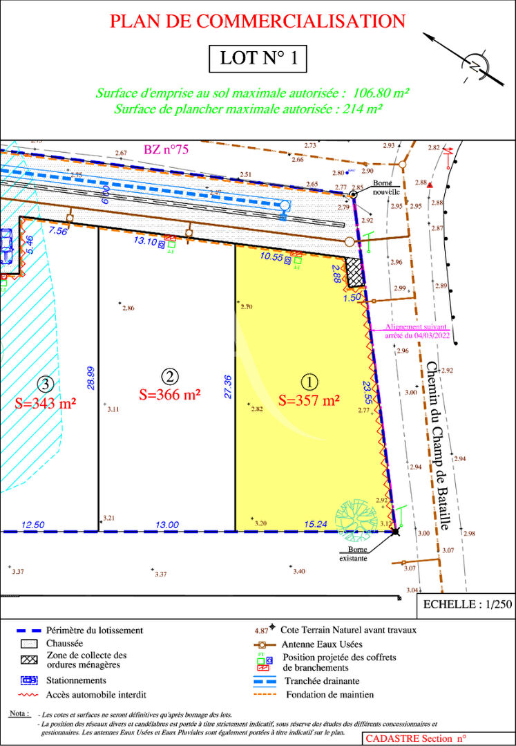 Zonage UC2, emprise au sol 40%. Certificat d'Urbanisme Opérationnel obtenu.