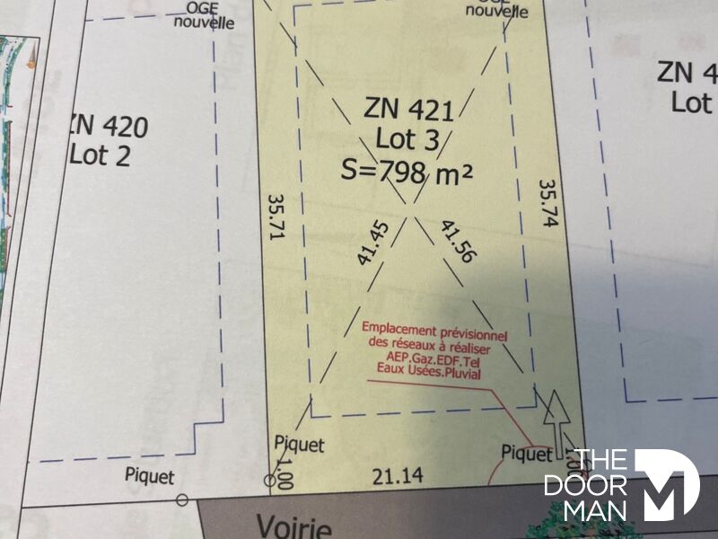 S. Capmartin vous propose à la vente un terrain plat de 798M² à construire, déjà viabilisé et raccordé au tout à l'égout économie de 15 a 20000€ pas d'assainissement autonome à prévoir et éligible au PTZ. Façade 35.71M sur une profondeur de 21.14M, ...