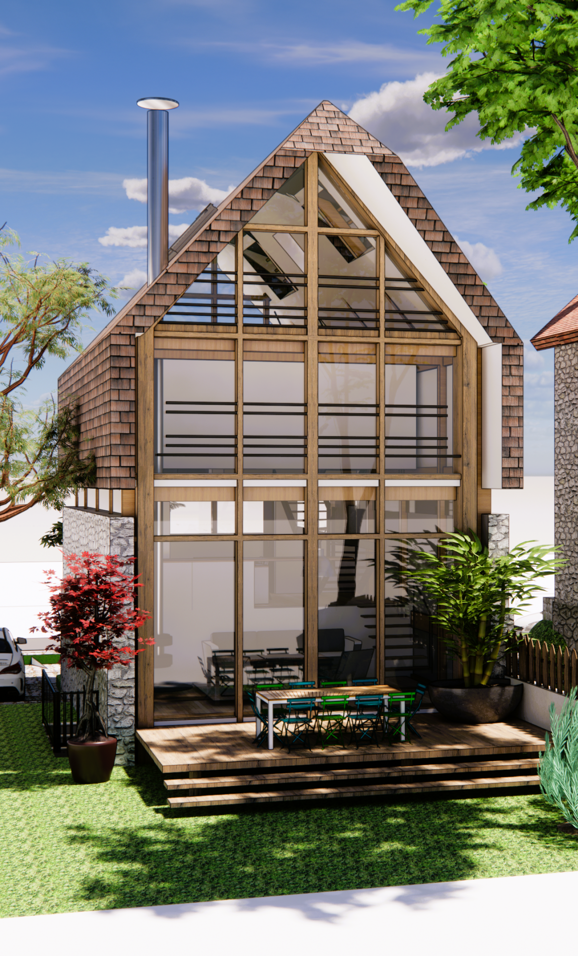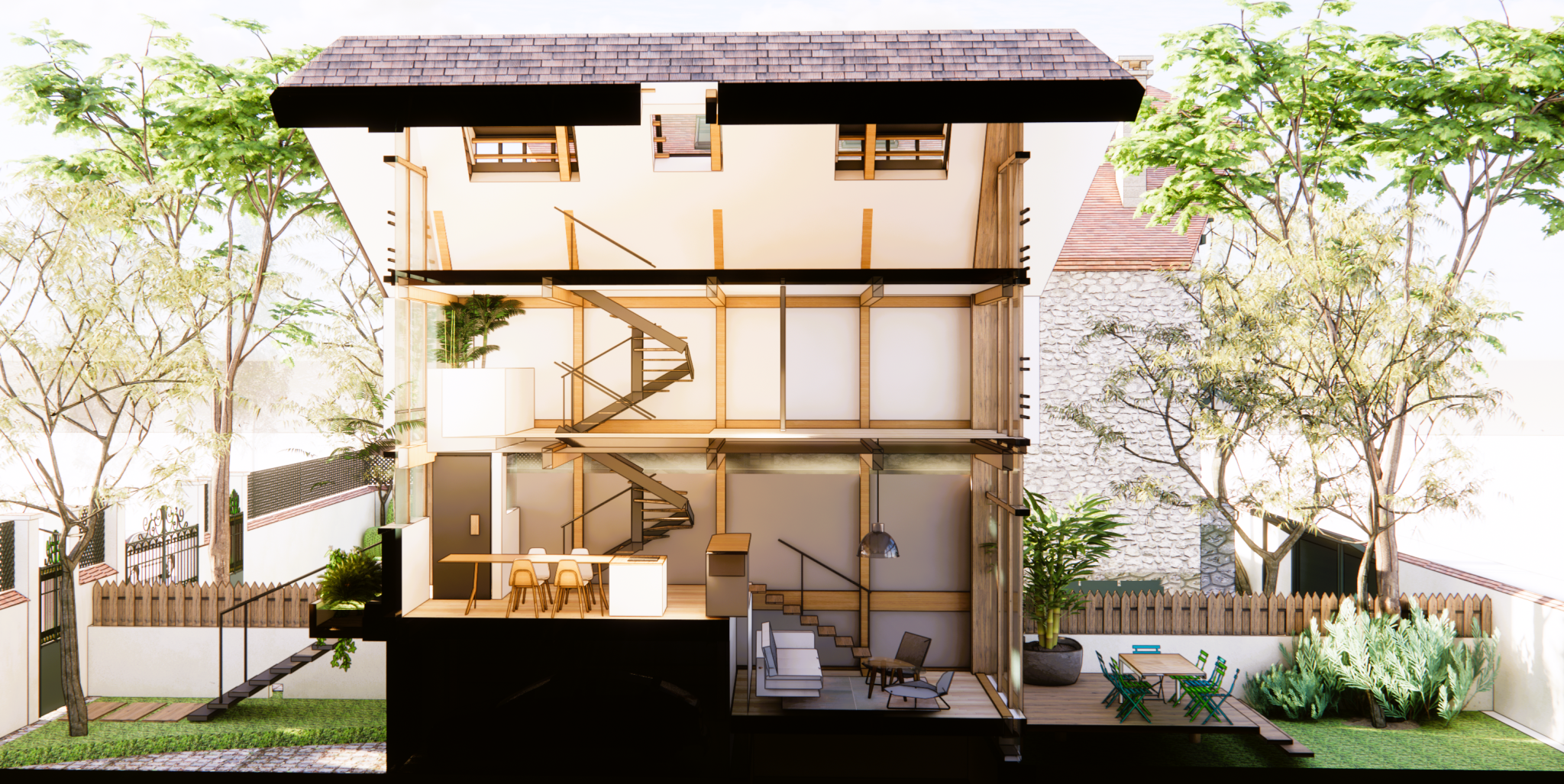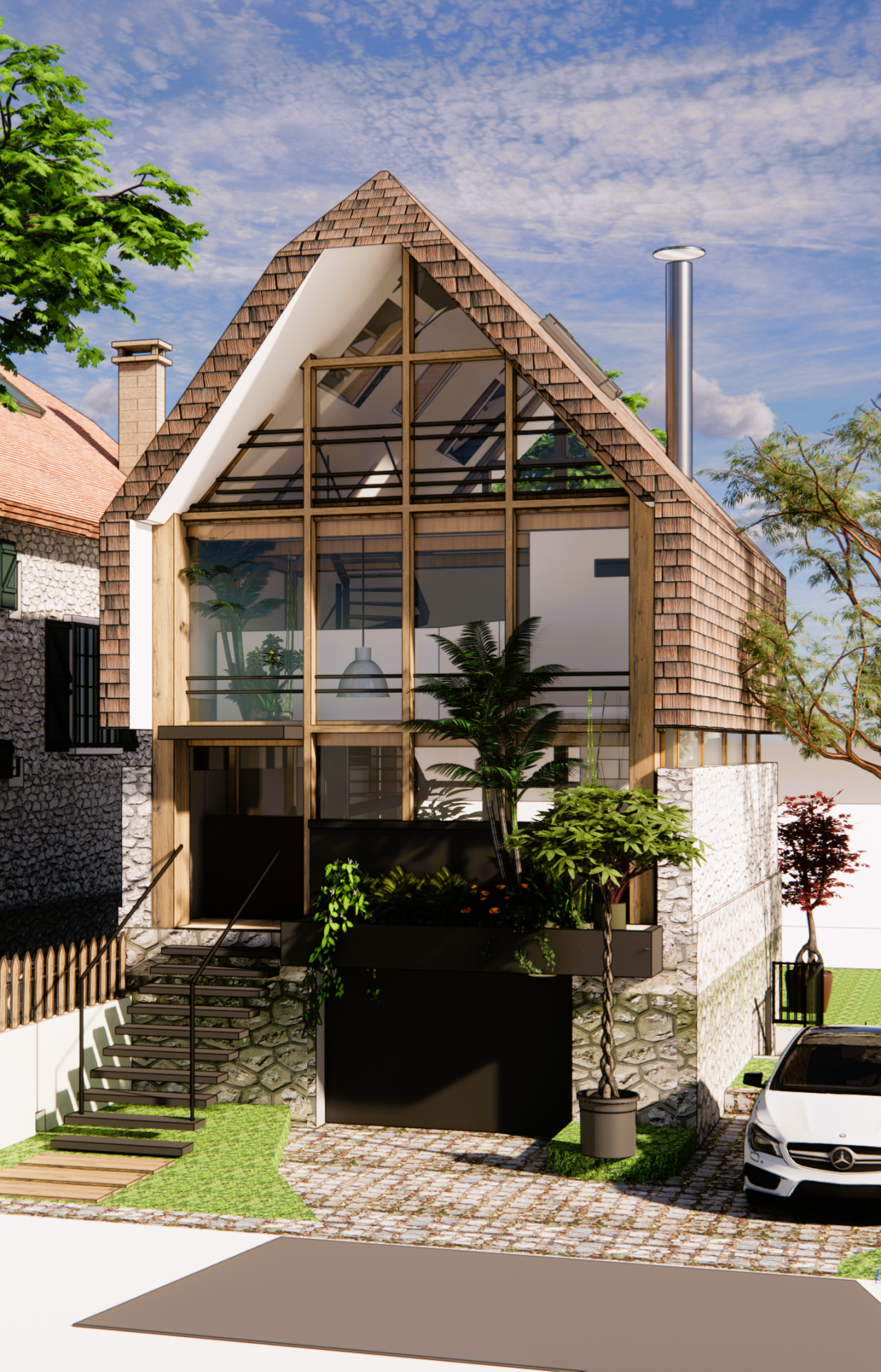 Quartier des Mûriers proche Molènes, terrain à bâtir de 261m2 vendu avec projet de maison d'architecte non mitoyenne de 115m2 habitables plus garage en sous-sol.