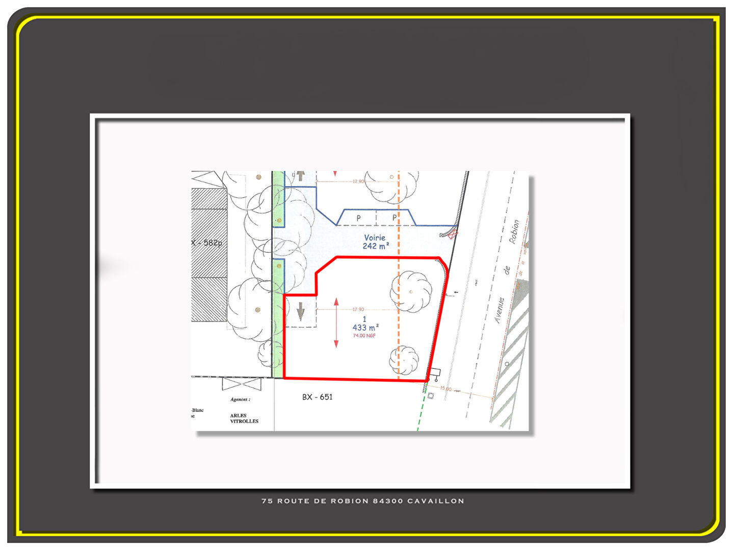 À vendre TERRAIN CONSTRUCTIBLE sur Caumont Sur Durance, calme garanti. LIBRE DE CONSTRUCTEUR.