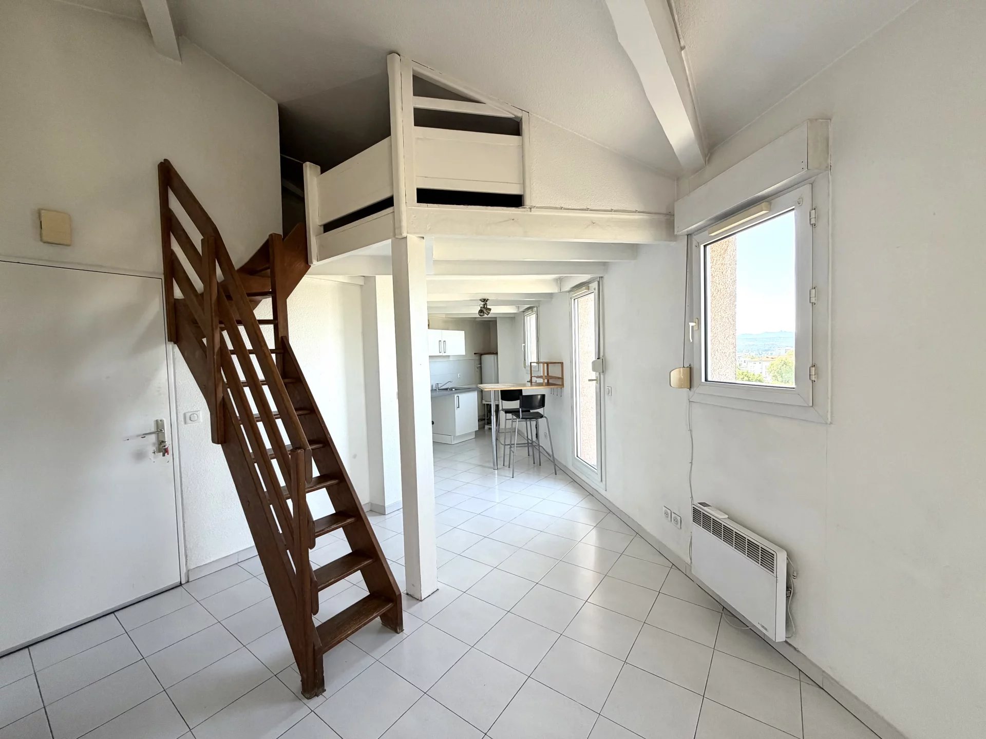 A Louer en meublé à Aix en Provence en centre ville, proche du palais de justice, un appartement de 33,29 m2 en duplex atypique avec une belle hauteur sous plafond. Séjour avec mezzanine, cuisine américaine séparée, salle d'eau et WC séparé. Double vitra...