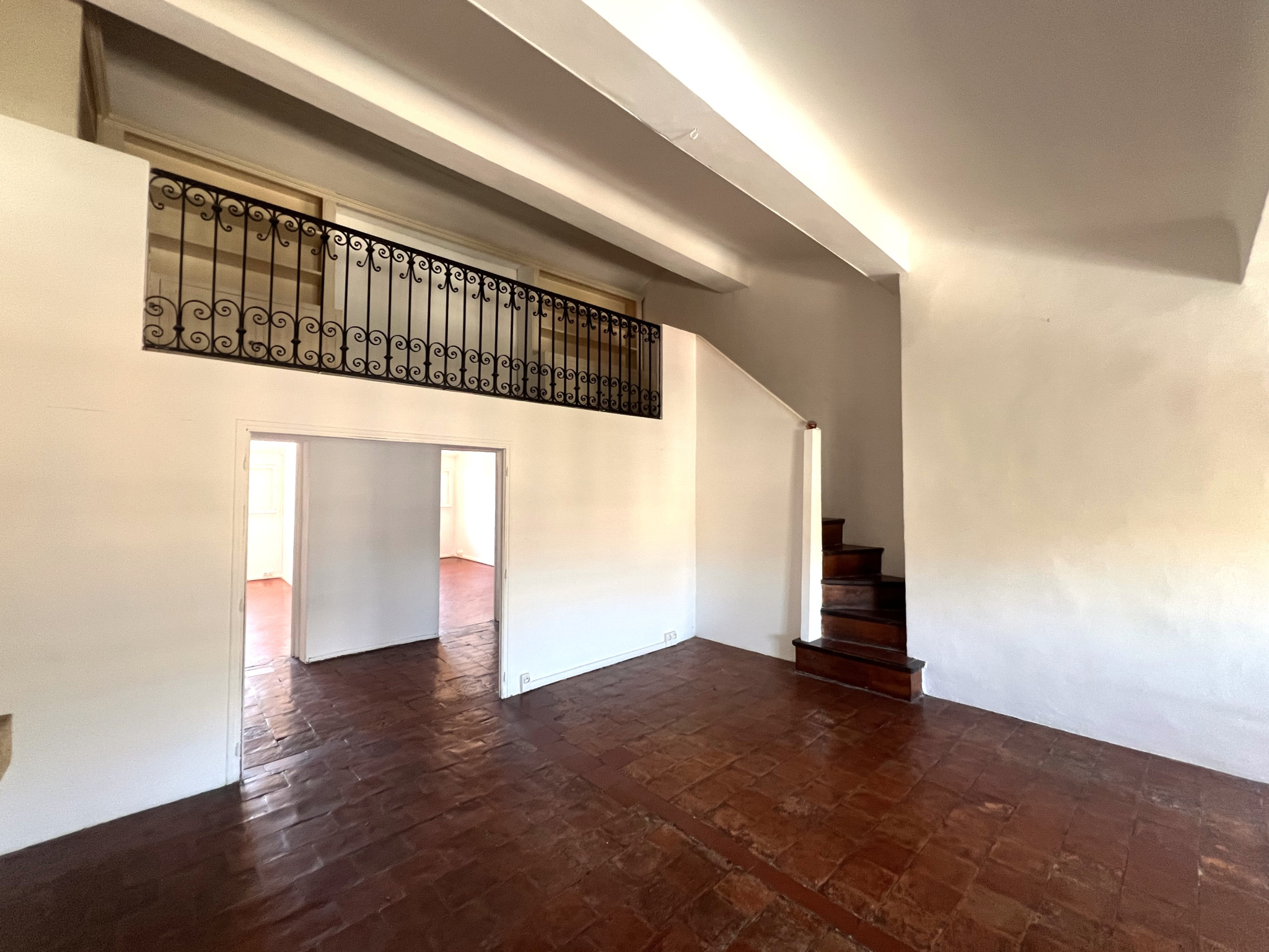 A louer Aix-centre - Quartier Mazarin, dans rue calme, appartement en triplex de 164 m² habitables situé au 2ème étage sans ascenseur.<BR><BR>Il se compose d'une entrée, salon, séjour , cuisine séparée et équipée, salle d?eau avec wc et secon...