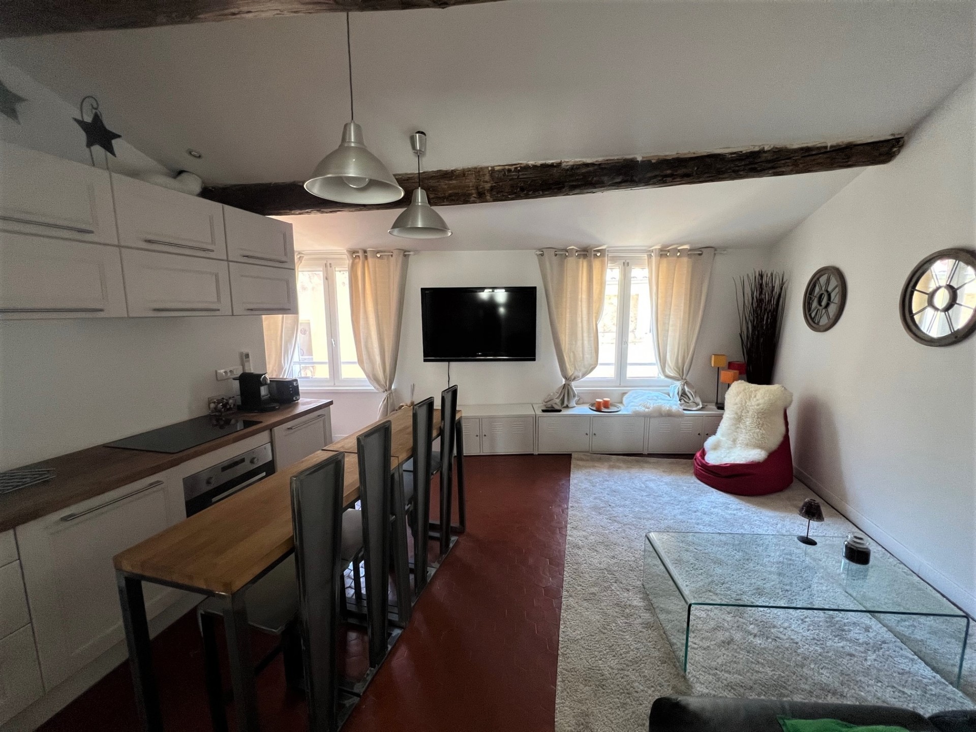 À découvrir , Aix centre , à proximité immédiate de la rue d?Italie , dans rue calme, bel appartement meublé type 3 de 45m2 habitables situé au 3eme étage sans ascenseur . Il se compose d?une entrée , séjour avec cuisine américaine, 2 chambres et salle d?eau-w...