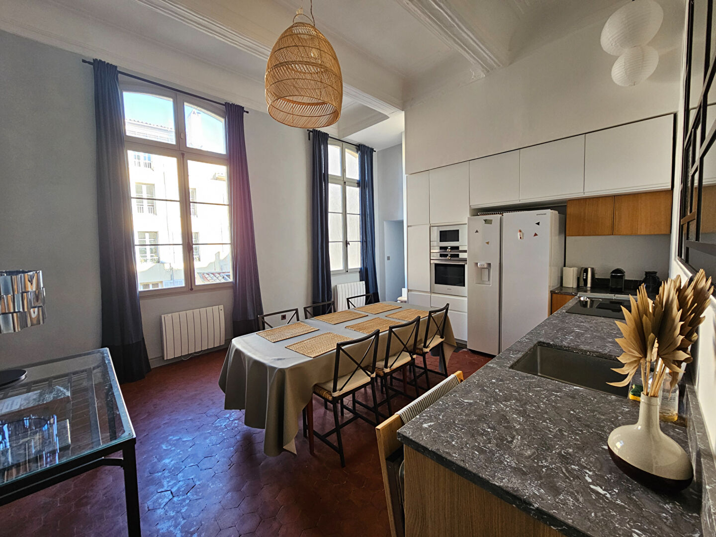 Situé au coeur du centre historique d'Aix-en-Provence, ce splendide appartement T4 de 94,67 m², situé dans un immeuble ancien au 2ème étage, a été entièrement rénové et meublé avec élégance. Il offre des prestations haut de gamme, avec une cuisine totalem...