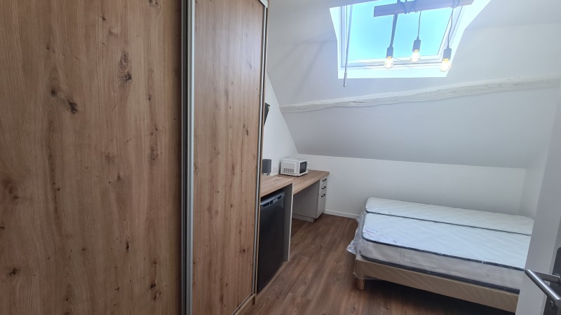 COEUR DE VILLE, au calme, dans résidence en co-living, louez cette chambre Meublée au 4eme étage comprenant : un lit double de 160x200 ou possibilité de 2 lits de 80x200, une dressing, un grand bureau, un coin kitchenette (réfrigérateur/congélateur + micro-ond...
