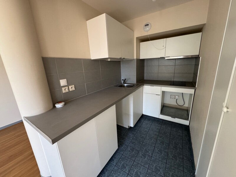 Orléans Théâtre louez cet appartement F2 comprenant une cuisine ouverte aménagée et équipée, (hotte, plaques et réfrigérateur), séjour avec balcon, une chambre avec placard, salle de bains, wc. Une place de parking en sous-sol