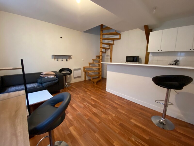 ORLEANS RUE DE BOURGOGNE, 3ème et dernier étage, découvrez ce F2 en duplex comprennant : une cuisine aménagée et équipée d'une cuisinière, un séjour avec cheminée décorative, une salle de bain avec baignoire, une grande chambre en mezzanine et un grenier.