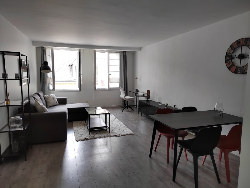 Appartement 3 pièces de 55m² proche de la place d'armes dans le Quartier Dunois. Ce logement en rez de chaussée donnant sur un jardin privatif comprend une entrée avec placard, une cuisine aménagée et équipée ouverte sur le séjour, deux chambres dont une ...