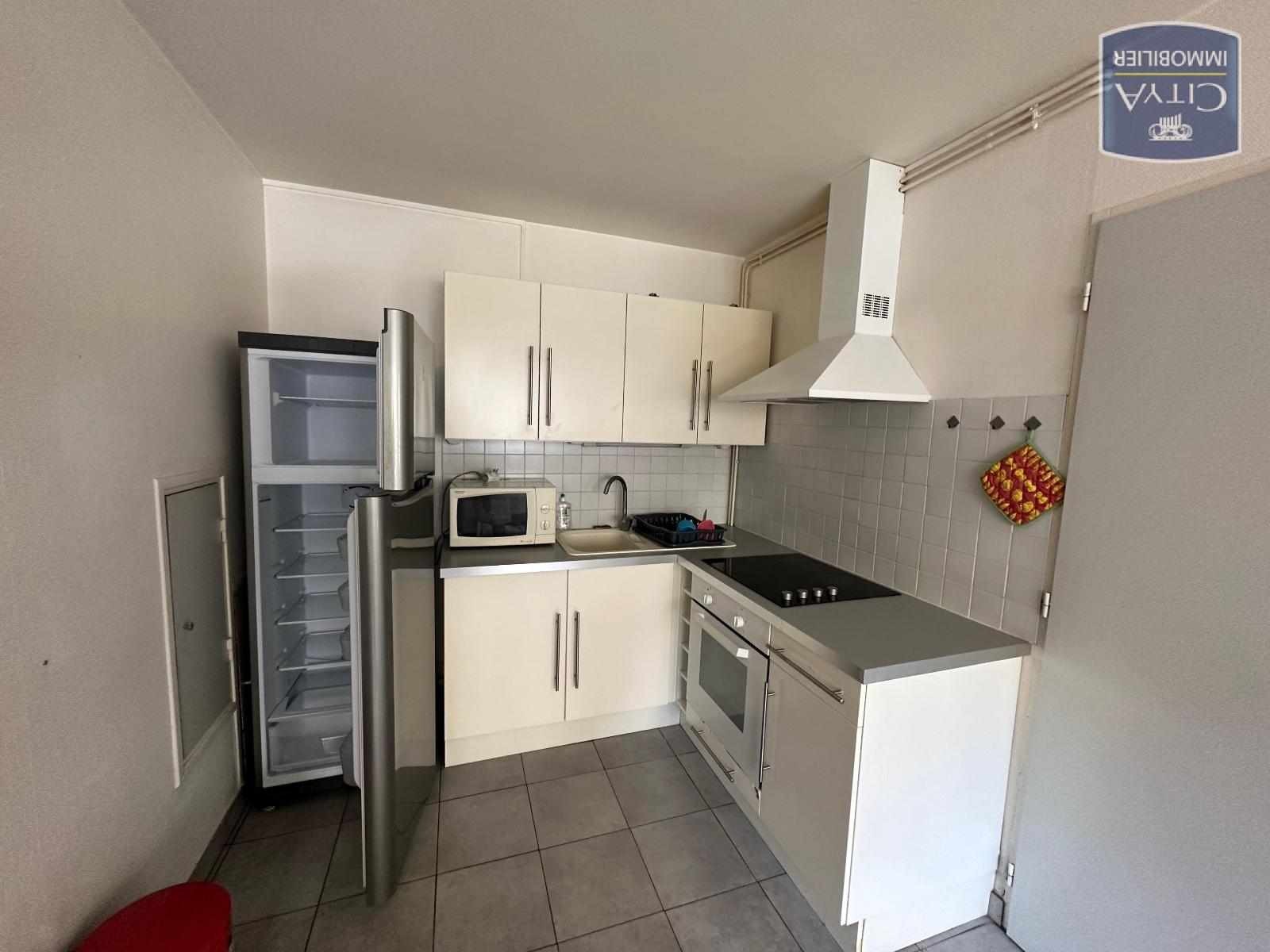 BOURG EN BRESSE Appartement Type 1 situé en dernier étage d'un immeuble, à proximité des commerces, zone bus, comprenant une pièce principale avec coin kitchenette équipée avec plaques de cuisson et réfrigérateur, une chambre séparée et une salle de bains...