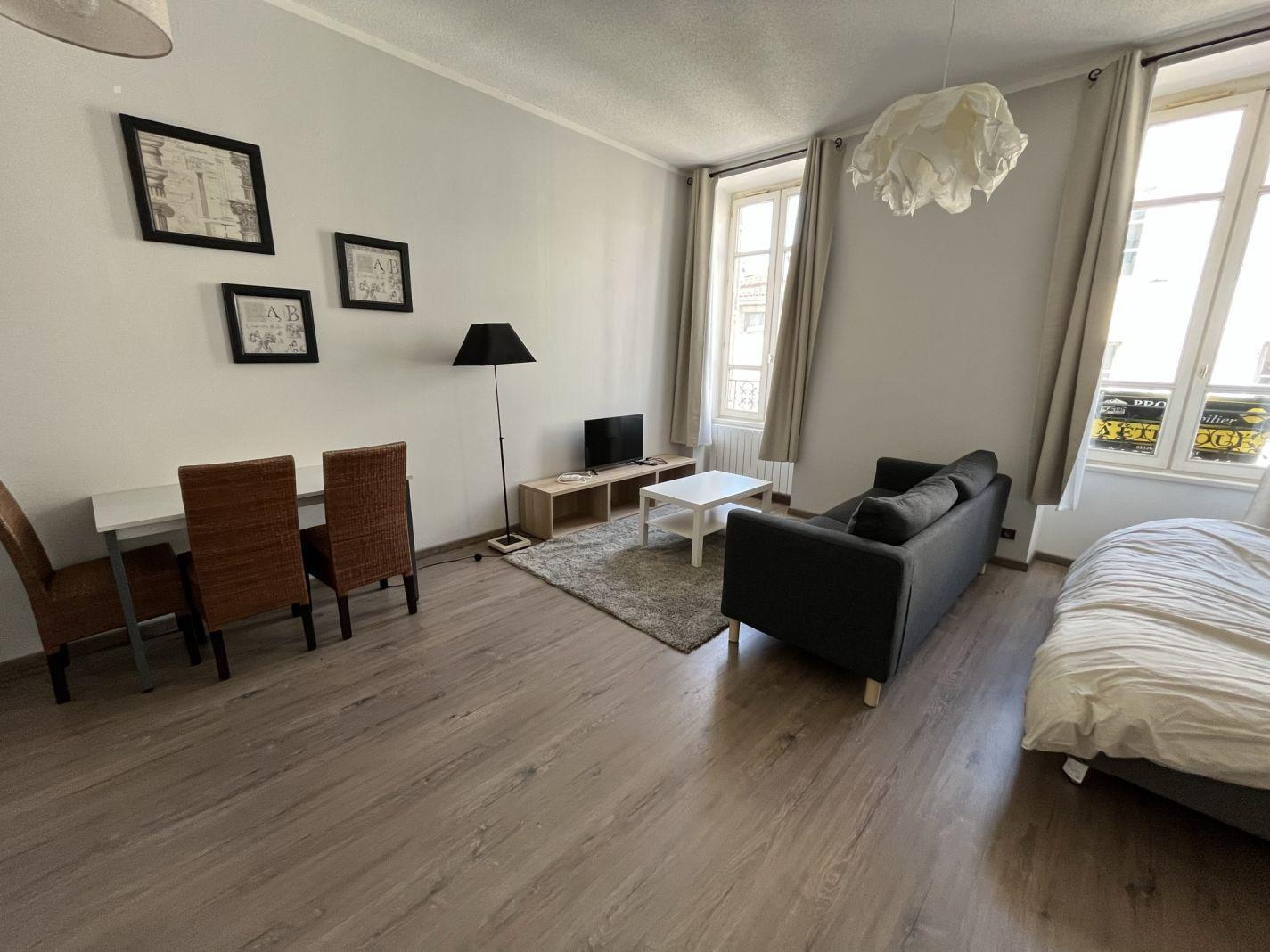 En centre-ville de BELLEY (01300), au 1er étage, un studio meublé d'une surface de 18.81m², composé d'une pièce de vie, d'un coin chambre et d'une salle d'eau avec toilette.