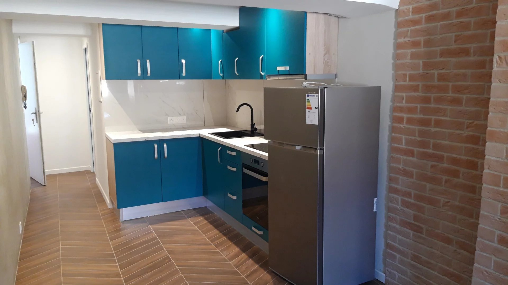 Studio meublé de 23 m² au 4ème étage ENTIERMENT RENOVE AVEC GOUT comprenant entrée, séjour/chambre avec cuisine équipée (plaques cuisson, hotte, réfrigérateur, lave-linge...).