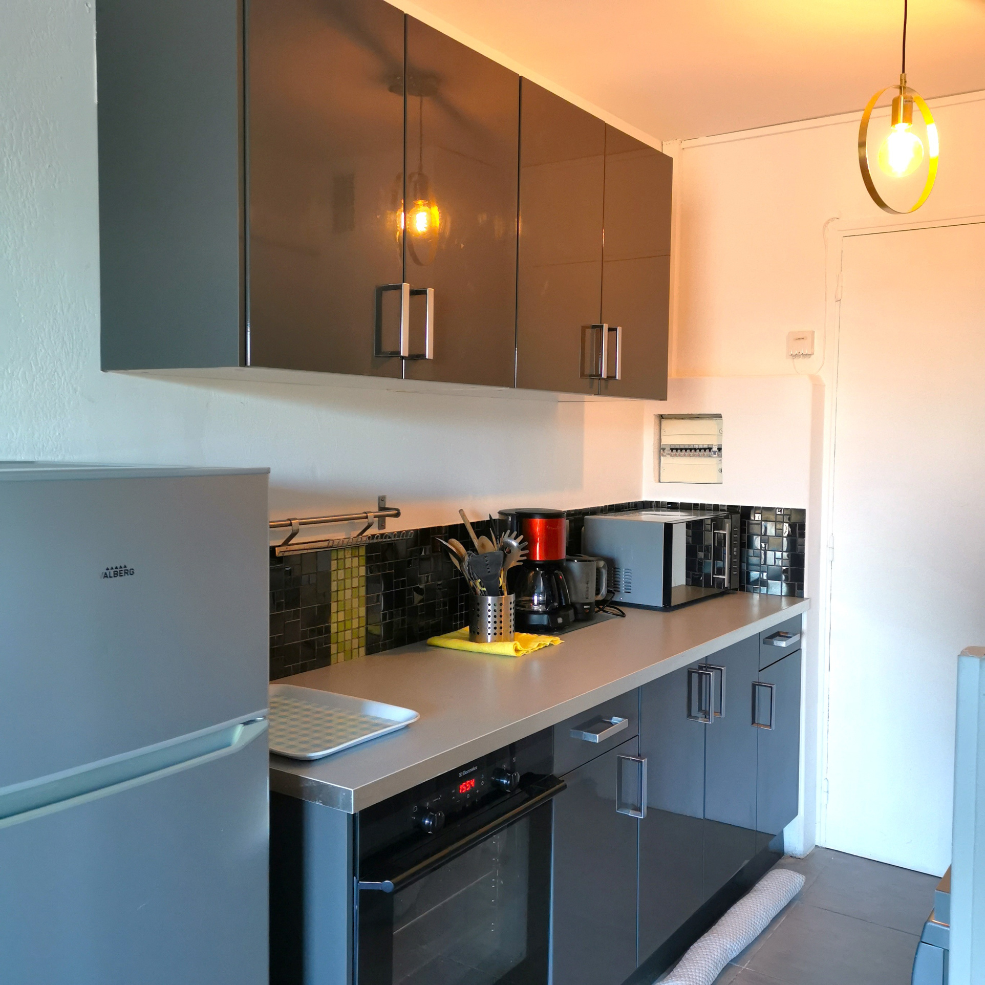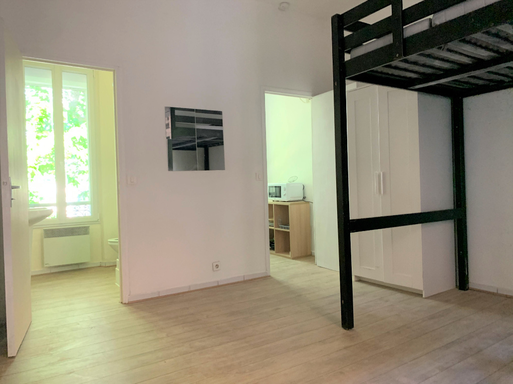 Aix en Provence - A deux minutes à pieds du centre ville et des arrêts de bus Dans résidence située Allée FORBIN - Joli T1 meublé d'environ 30m2 : composé d'une pièce principale avec un coin nuit, une cuisine aménagée et équipée (plaques de cuisson, ...